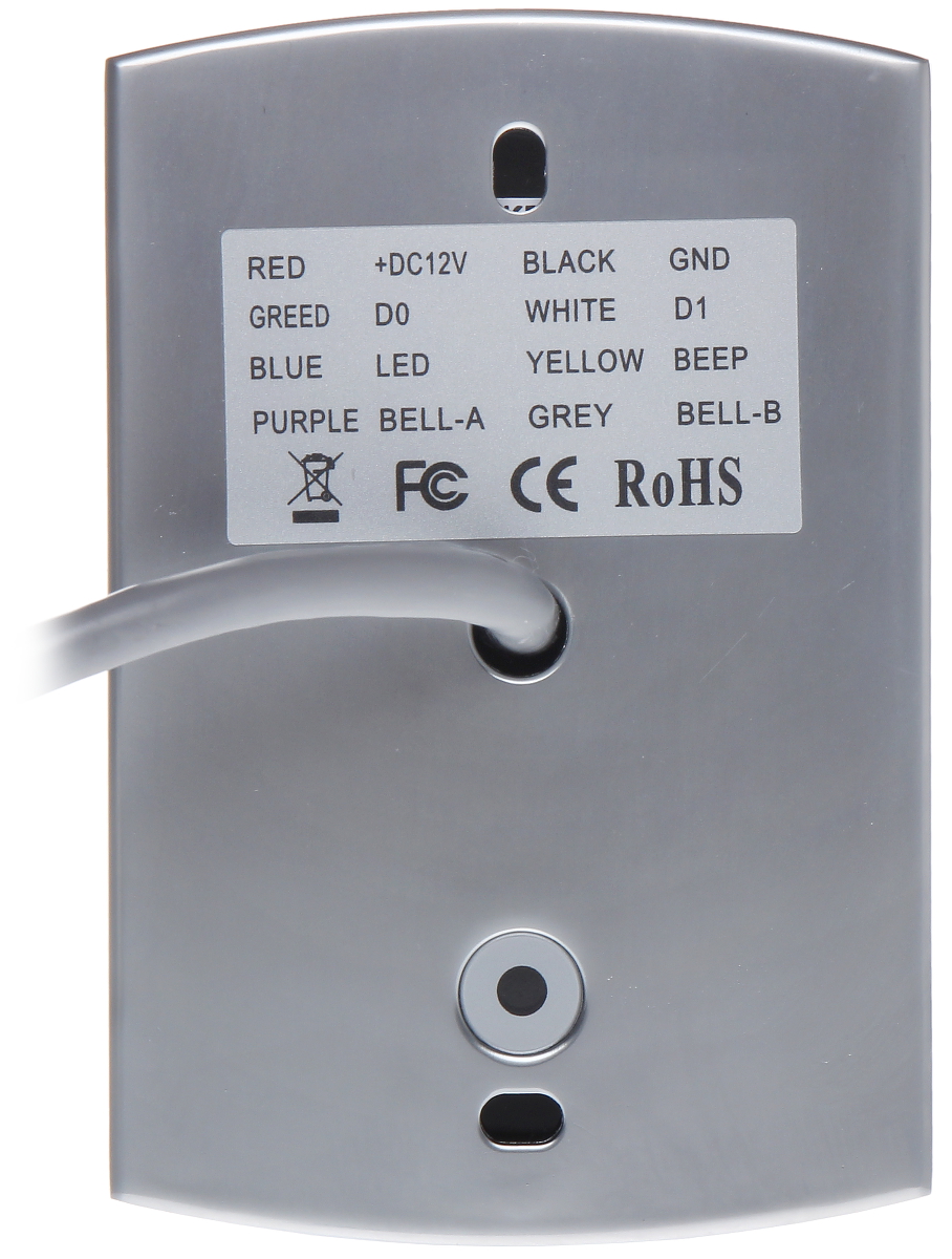 Zewnętrzny czytnik kart i breloków; Obsługa kart: Unique EM 125kHz ; Zasięg odczytu kart: max. 5 cm ; Wbudowana klawiatura; Przycisk dzwonka; Obudowa: Metalowa ;