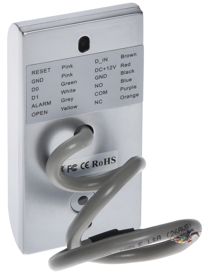Zewnętrzny, autonomiczny czytnik RFID; Obsługa kart: Unique EM 125kHz ; Zasięg odczytu kart: max. 6 cm ; Wyjście sabotażowe; Wybrane cechy: 10 000 zaindeksowanych użytkowników ; Obudowa: Metalowa ;