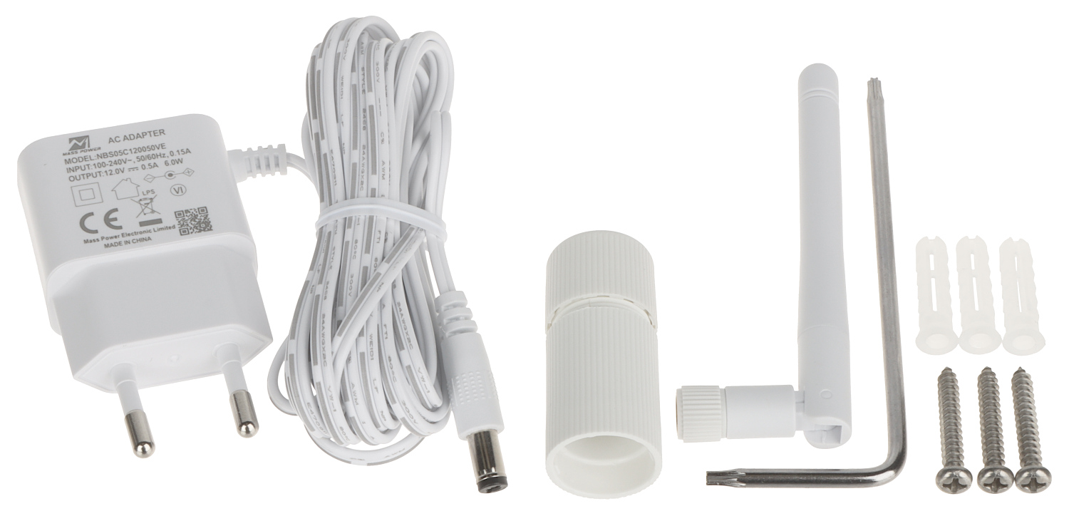 Przetwornik: 1/3 ” Progressive Scan CMOS ; Wielkość matrycy: 3.7 Mpx ; Rozdzielczość: 2560 x 1440, 2304 x 1296, 1920 x 1080 ; Kąt widzenia: 90 ° ; Zasięg oświetlacza IR: 30 m ; Gniazdo karty pamięci: Obsługa kart Micro SD do 256GB (możliwy zapis lokalny) ; Metoda kompresji obrazu: H.265+ ; Zasilanie: 12 V DC ;