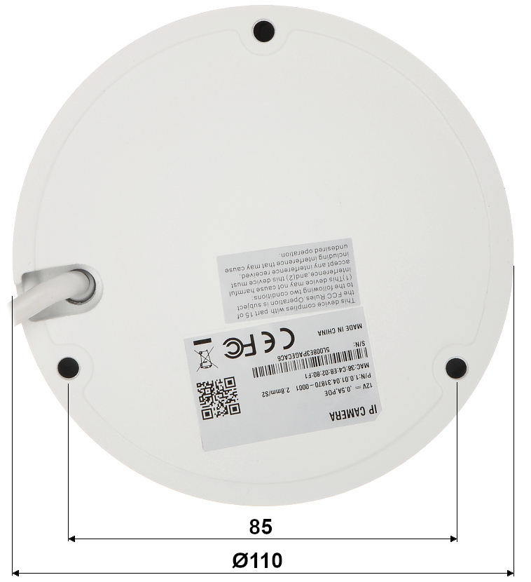Przetwornik: 1/2.9 ” ; Wielkość matrycy: 4 Mpx ; Rozdzielczość: 2688 x 1520, 2304 x 1296, 1920 x 1080 ; Kąt widzenia: 102 ° ; Zasięg oświetlacza IR: 30 m ; Gniazdo karty pamięci: Obsługa kart Micro SD do 256GB (możliwy zapis lokalny) ; Metoda kompresji obrazu: H.265+ ; Wandaloodporna: IK10 ; Zasilanie: PoE (802.3af), 12 V DC ;