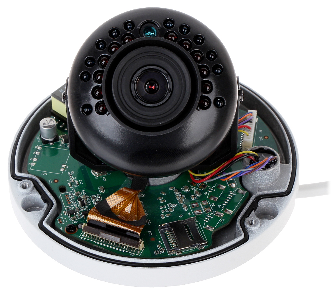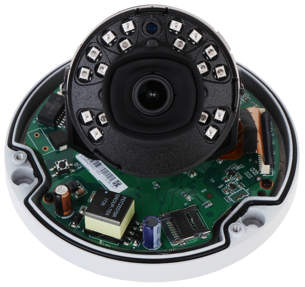 Przetwornik: 1/2.8 ” STARVIS™ CMOS ; Wielkość matrycy: 2.1 Mpx ; Rozdzielczość: 1920 x 1080 – 1080p ; Kąt widzenia: 110 ° ; Zasięg oświetlacza IR: 30 m ; Gniazdo karty pamięci: Obsługa kart Micro SD do 128GB (możliwy zapis lokalny) ; Metoda kompresji obrazu: H.265 ; Wejścia / wyjścia alarmowe: 1 / 1 ; Zasilanie: PoE (802.3af), 12 V DC ;