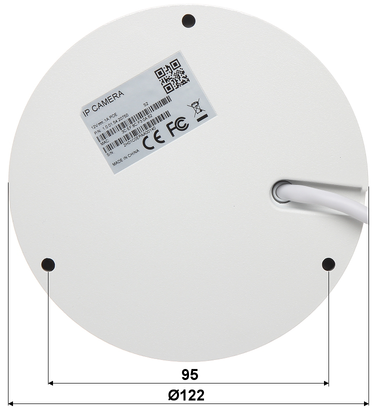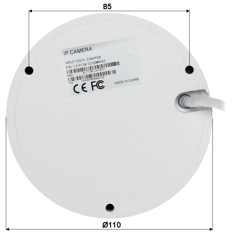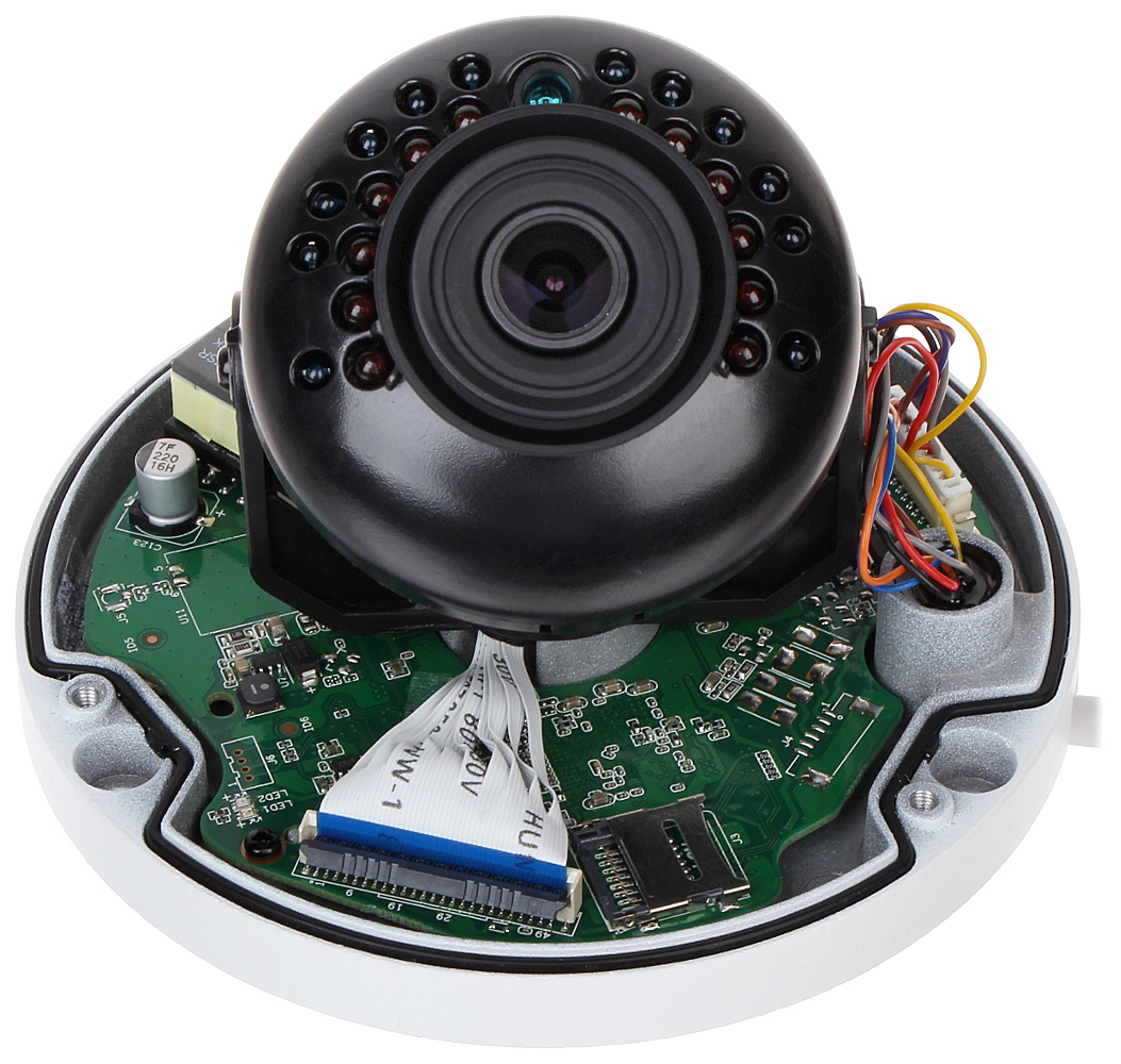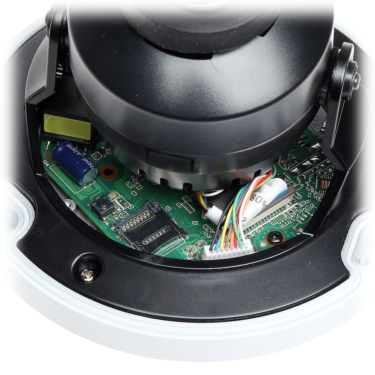 Przetwornik: 1/3 ” Progressive Scan Aptina CMOS ; Wielkość matrycy: 4.0 Mpx ; Rozdzielczość: 2688 x 1520, 2560 x 1440, 2304 x 1296, 1920 x 1080 ; Kąt widzenia: 104 ° ; Zasięg oświetlacza IR: 30 m ; Gniazdo karty pamięci: Obsługa kart Micro SD do 128GB (możliwy zapis lokalny) ; Metoda kompresji obrazu: H.265 ; Zasilanie: PoE (802.3af), 12 V DC ;