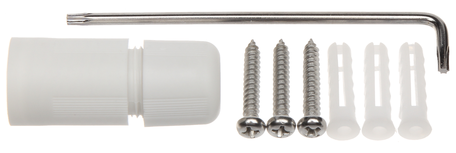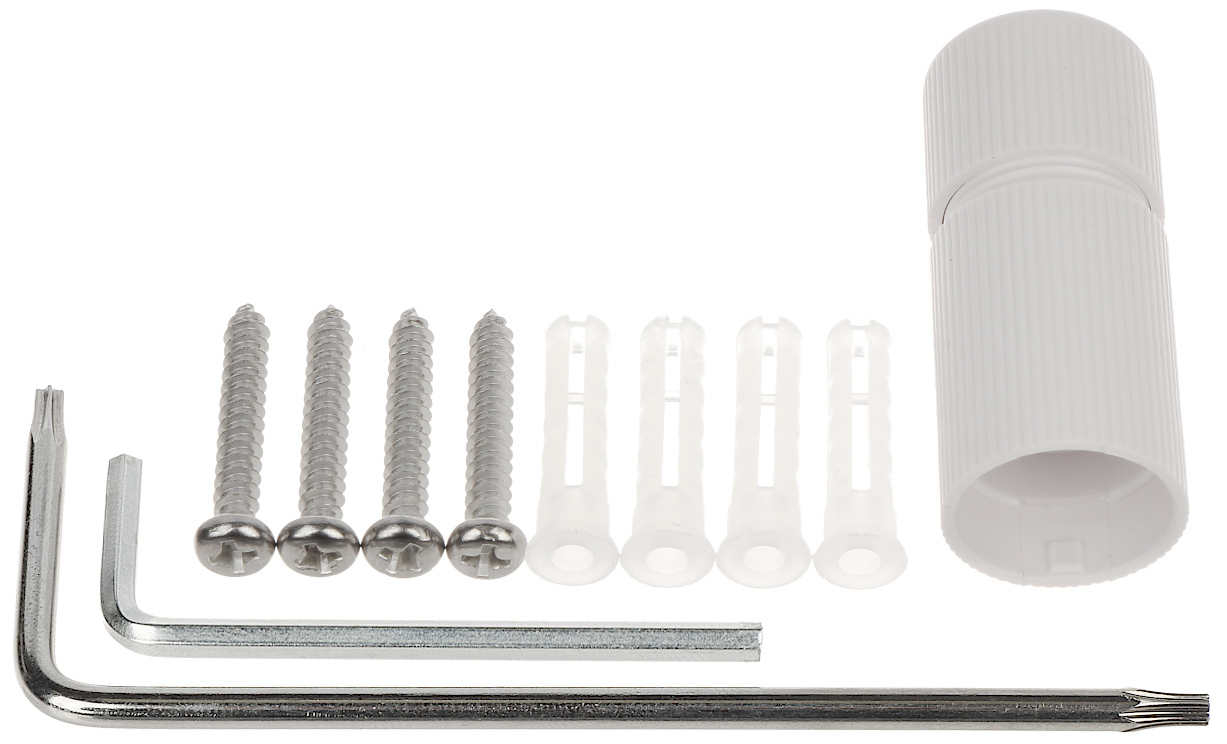 Przetwornik: 1/3 ” Progressive Scan CMOS ; Wielkość matrycy: 2.1 Mpx ; Rozdzielczość: 1920 x 1080 ; Kąt widzenia: 105 ° ; Zasięg oświetlacza IR: 30 m ; Metoda kompresji obrazu: H.265 ; Zasilanie: PoE (802.3af), 12 V DC ;