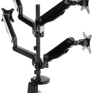 Uchwyt BL304-G umożliwia mocowanie 4 monitorów LCD do blatu, lub innych powierzchni płaskich; Rozmiar TV w calach: 10 ” … 27 ” ; Nośność: 9 kg ;