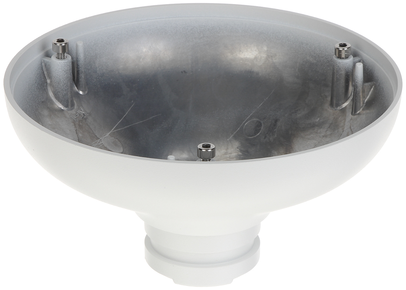 Uchwyt ścienny; Dedykowany do kamer kulistych; Rozstaw otworów montażowych: 121.5 mm ; Ilość otworów: 3 ; Materiał: Aluminium ; Kolor: Biały ;
