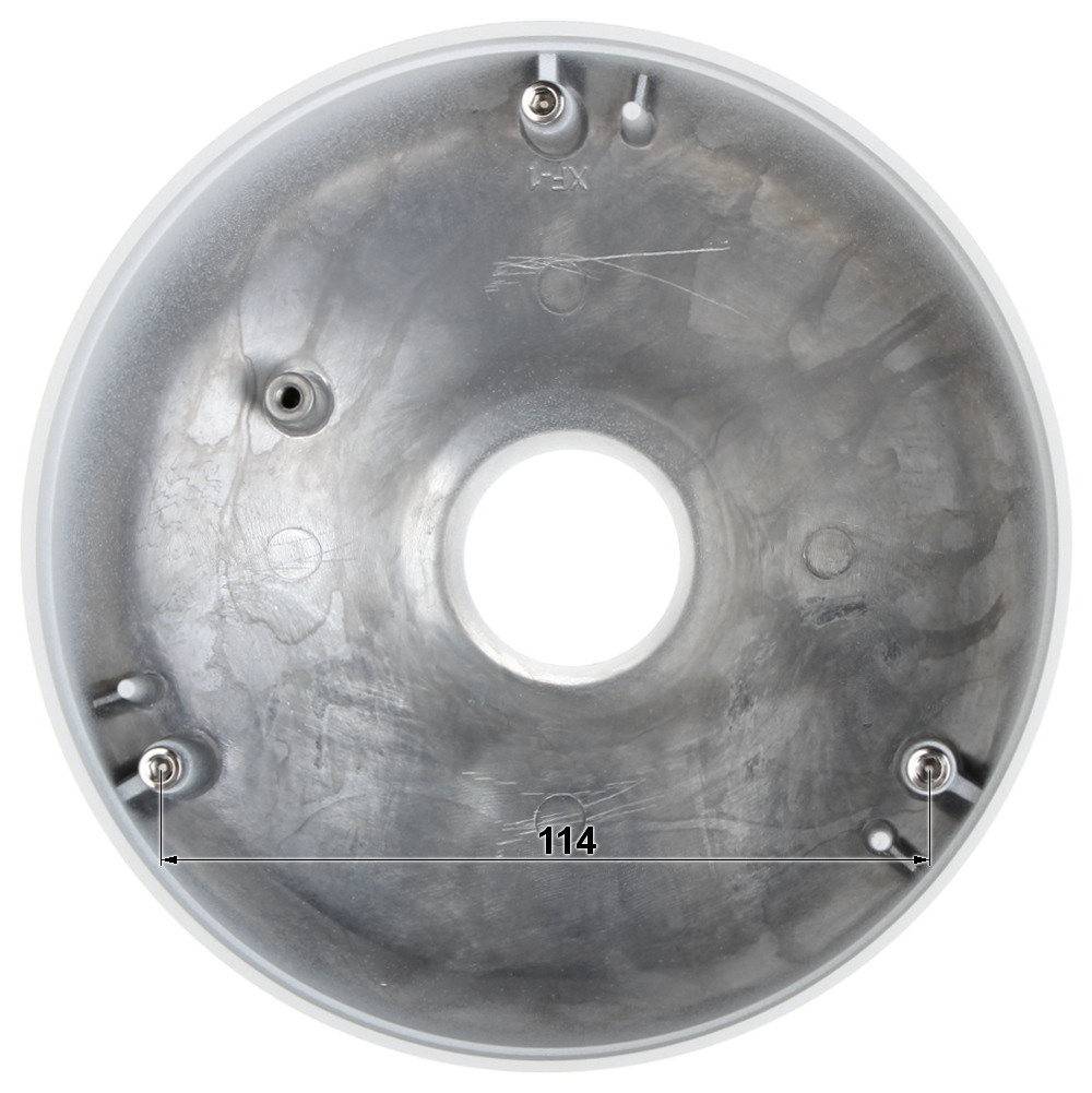 Rozstaw otworów montażowych: 114 mm ; Ilość otworów: 3 ; Średnica uchwytu: Ø 155 mm ; Materiał: Aluminium ; Kolor: Biały ; Dystans od powierzchni montażu: 39 mm ;