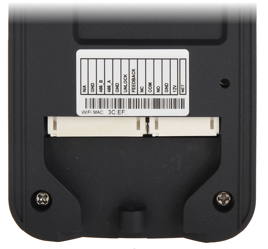 Przetwornik: 1/2.8 “, 2 Mpx CMOS ; Kąt widzenia: 129 ° ; Metoda kompresji obrazu: H.264 ; Wbudowany czytnik zbliżeniowy : Karty kontroli dostępu ; Liczba obsługiwanych abonentów: 2 ; Wybrane cechy: Komunikacja dwukierunkowa, Wykrywanie sabotażu – otwarcia obudowy ; Zasilanie: PoE (802.3af), 12 V DC ; Kolor: Grafitowy ;