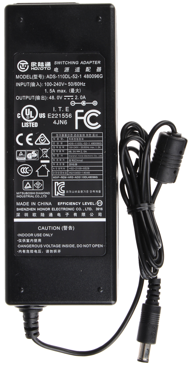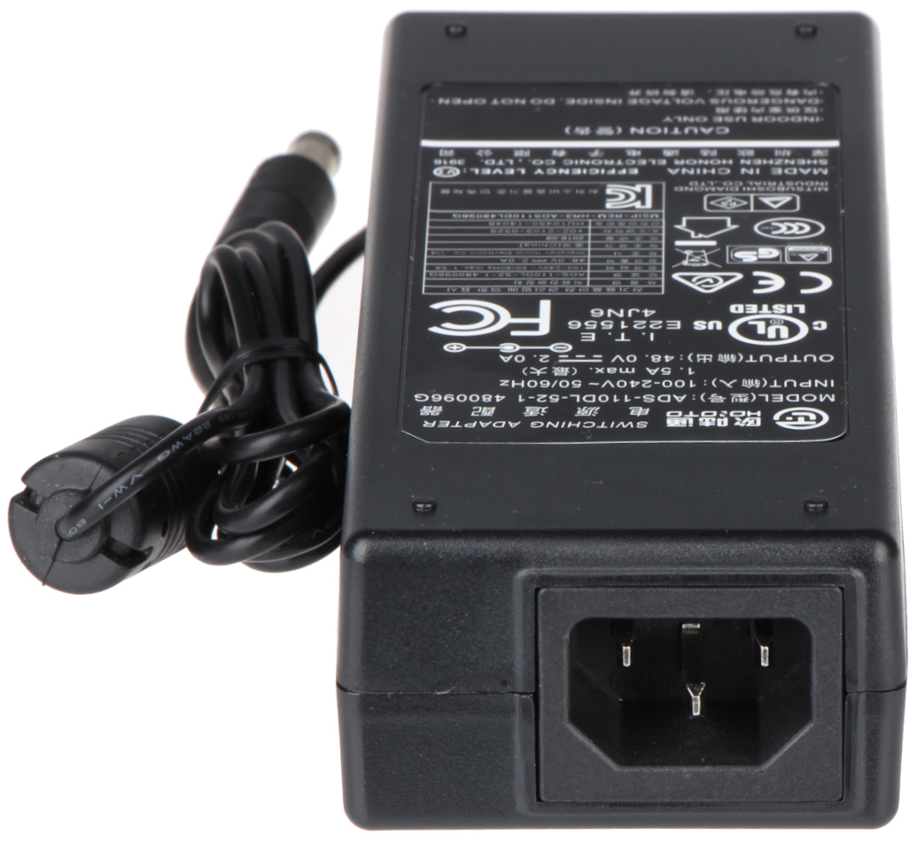 Maksymalny prąd wyjściowy: 2.0 A ; Napięcie wyjściowe: 48 V DC ; Napięcie wejściowe: 100 V … 240 V AC ; Moc wyjściowa: max. 96 W ; Złącze: Wtyk 6.5/4.3/1.4 mm na przewodzie ;