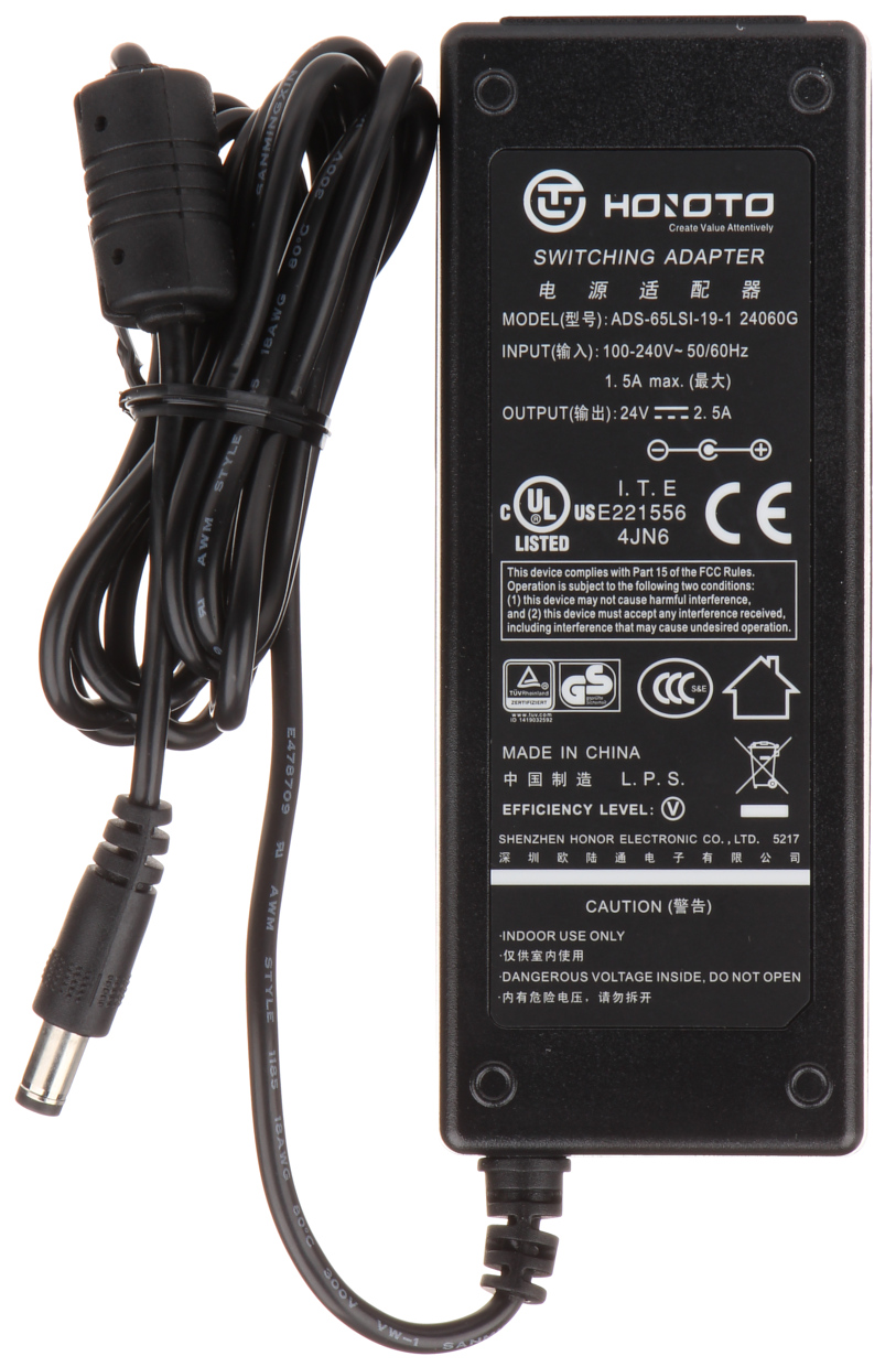 Zasilacz dedykowany do Switcha VTNS1060A przeznaczonego do systemów wideodomofonowych IP DAHUA; Napięcie wyjściowe: 24 V DC ; Wydajność prądowa zasilacza: 2.5 A ; Moc zasilacza: 60 W ;