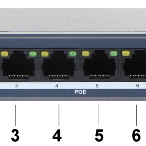 Porty LAN: 2 x RJ45 10/100 Base-TX – Uplink, 4 x RJ45 10/100 Base-TX ( 1 x PoE (802.3af/at/bt) + 3 x PoE (802.3af/at) ) ; Szybkość transmisji: 10 / 100 Mb/s : 2 Porty LAN + 4 Porty LAN & PoE ; Maksymalna sumaryczna moc: 60 W ; Tablica adresów MAC: 2k ; Zasilanie: 48 V DC / 1.35 A ;