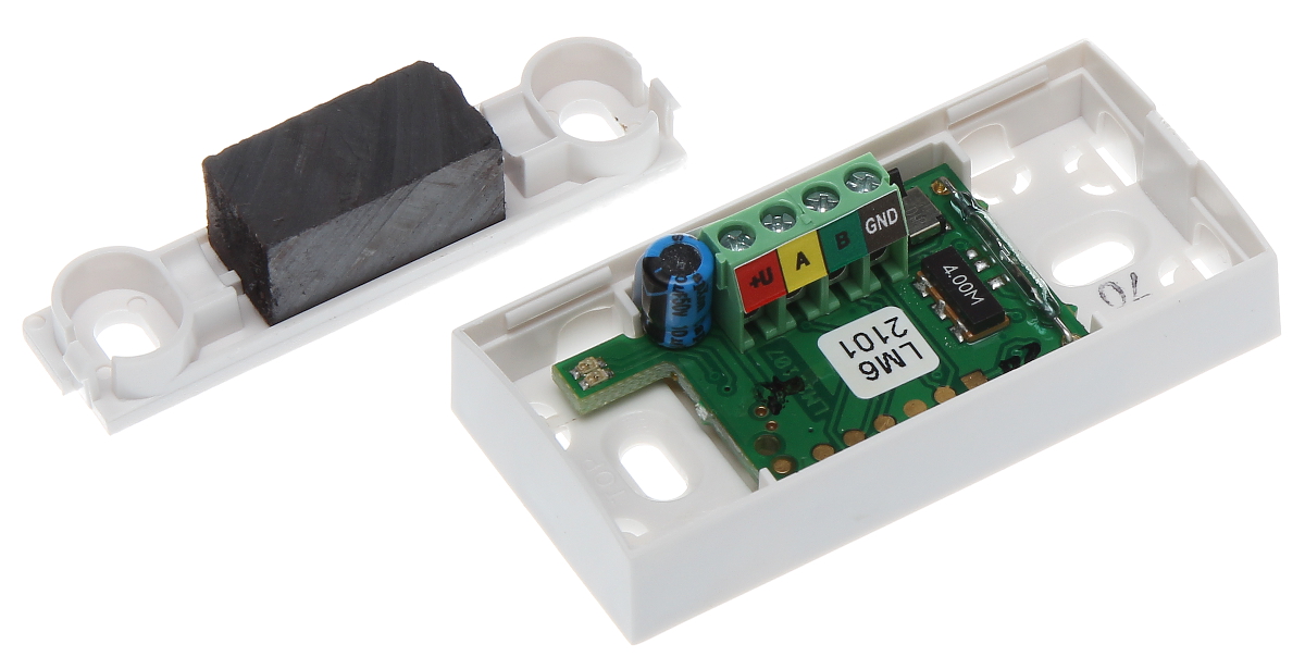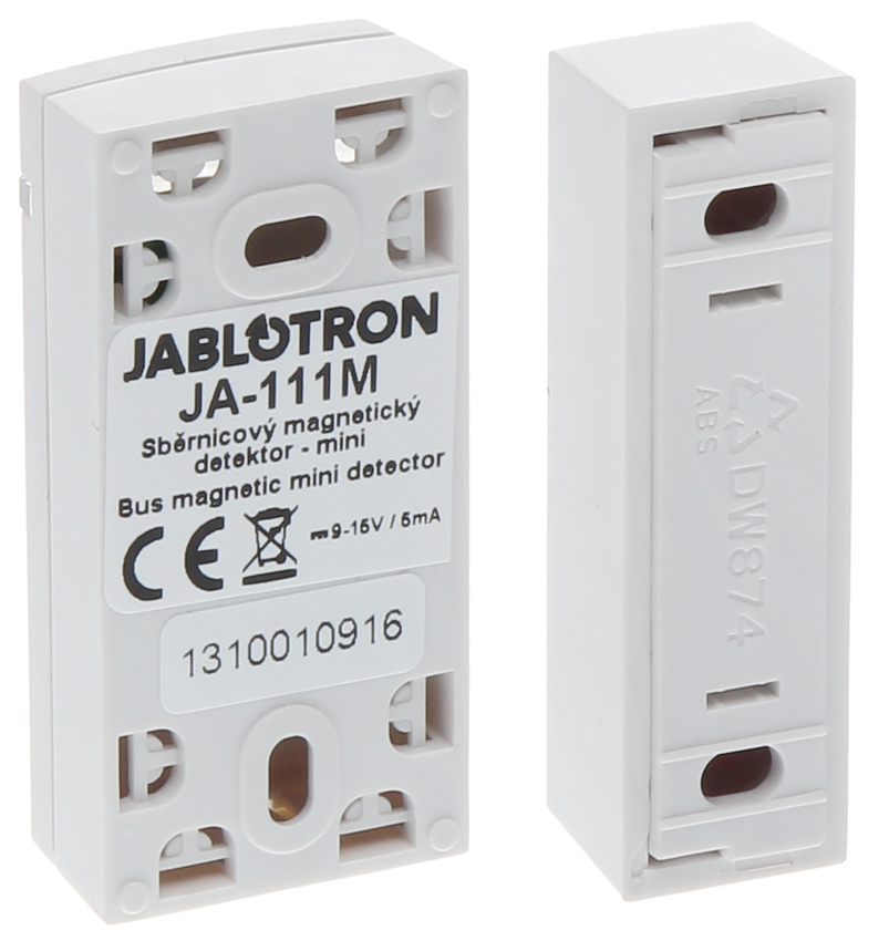 Współpraca: JABLOTRON 100 ; Detekcja: Otwarcie drzwi lub okna ; Wyjścia alarmowe: Magistrala BUS ; Odległość zamknięcia styków kontaktronu: min. 20 mm ; Odległość otwarcia styków kontaktronu: min. 30 mm ;