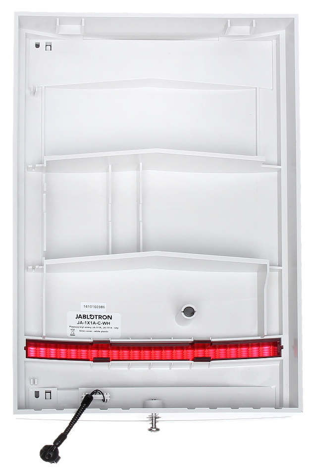 Plastikowa obudowa do sygnalizatorów zewnętrznych JABLOTRON 100; Materiał wykonania: Tworzywo sztuczne ; Kolor: Biały ; Kolor maskownicy sygnalizatora optycznego: Czerwony ;