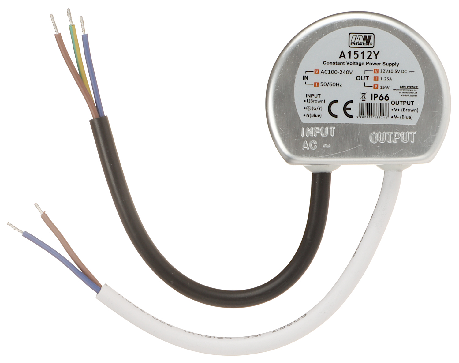Napięcie wyjściowe: 12 V DC ; Wydajność prądowa zasilacza: 1.25 A ; Moc zasilacza: 14.98 W ; Klasa szczelności: IP66 ;
