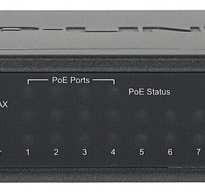 Porty LAN: 8x RJ45 ( 4 PoE ) ; Szybkość transmisji: Gigabit Ethernet – 1000 Mb/s Full Duplex ; Maksymalna moc wyjściowa: 15.4 W / port PoE ; Maksymalna sumaryczna moc: 53 W ; Tablica adresów MAC: 8k ;