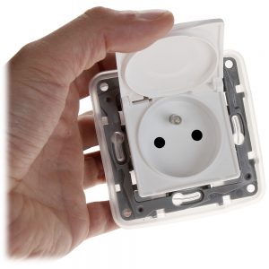 Napięcie znamionowe: 230 V / 50 Hz ; Maksymalna wytrzymałość prądowa: 16 A ; Uziemienie; Zaciski kablowe: automatyczne zaciski sprężynowe ; Typ gniazda: CEE 7/5 ; Wybrane cechy: Klasa szczelności : IP44 Obudowa bryzgoszczelna ;