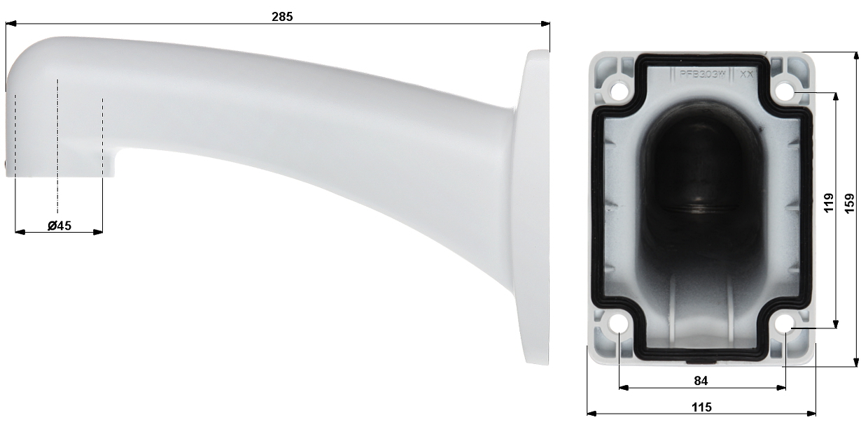 Adapter służy do zamocowania rury łączącej z adapterem kamery; Materiał: Aluminium ; Kolor: Biały ;
