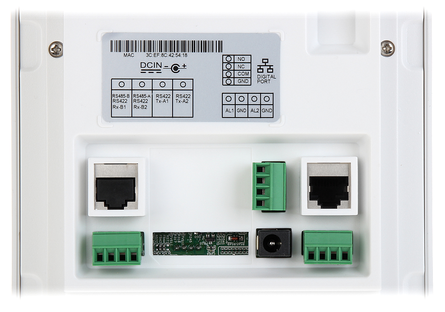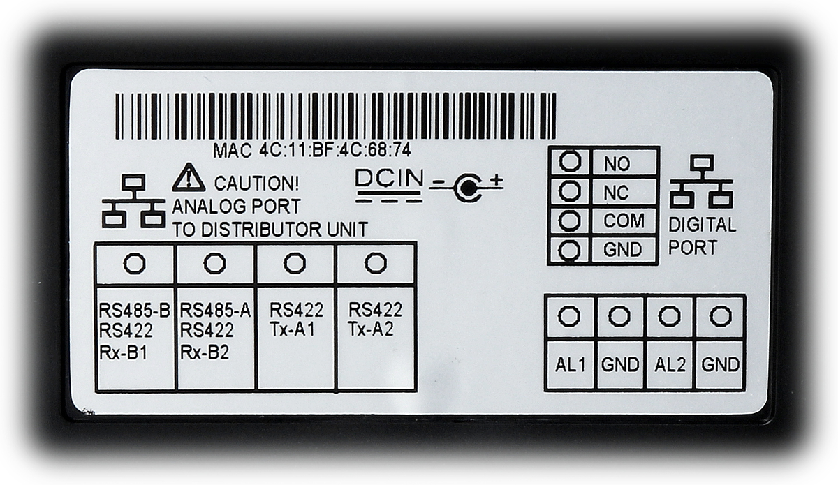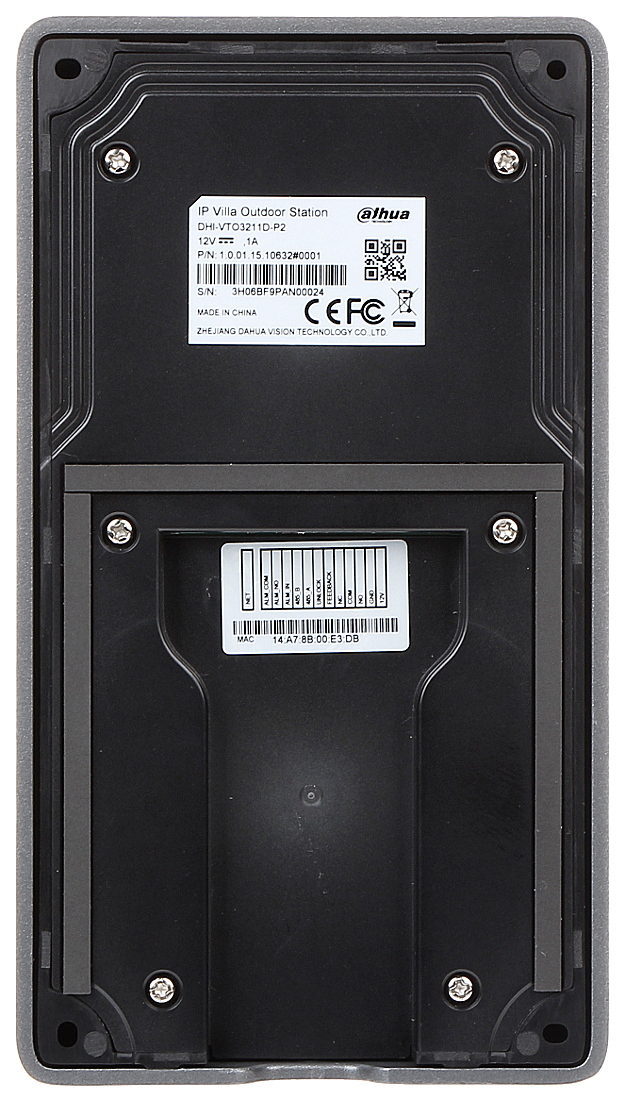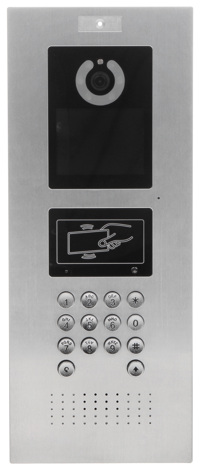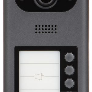 Przetwornik: 1/2.8 “, 2 Mpx CMOS ; Kąt widzenia: 140 ° ; Metoda kompresji obrazu: H.264 ; Wbudowany czytnik zbliżeniowy : Karty kontroli dostępu ; Liczba obsługiwanych abonentów: 4 ; Wybrane cechy: Komunikacja dwukierunkowa, Wykrywanie sabotażu – otwarcia obudowy ; Zasilanie: PoE (802.3af), 12 V DC ; Kolor: Grafitowy ;