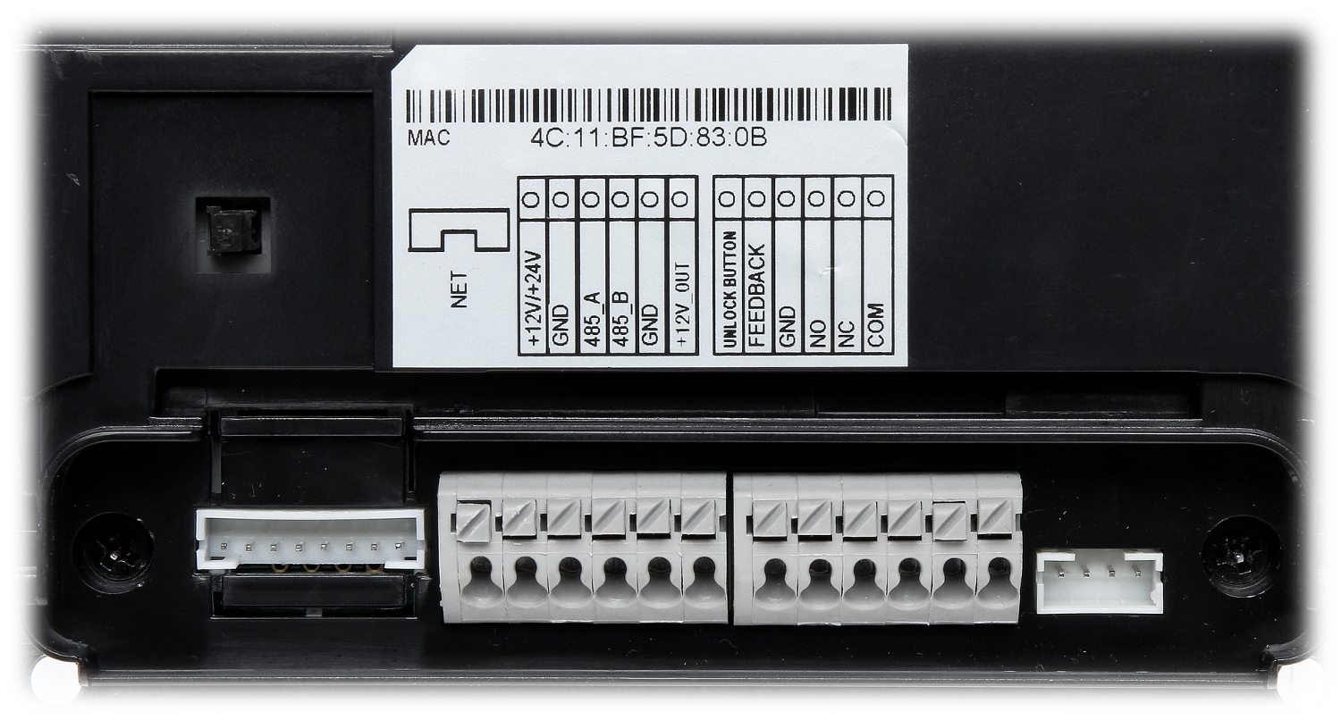 Przetwornik: 1/2.7 “, 2 Mpx CMOS ; Wyświetlacz: 10 ” IPS – pojemnościowy ekran dotykowy ; Metoda kompresji obrazu: H.264 ; Kompatybilność: SIP ; Wybrane cechy: Wbudowany czytnik zbliżeniowy – MIFARE 13.56 MHz, Wbudowany czytnik linii papilarnych, Rozpoznawanie twarzy, Komunikacja dwukierunkowa, Wykrywanie sabotażu – oderwania od podłoża, RS-485, Wiegand ;