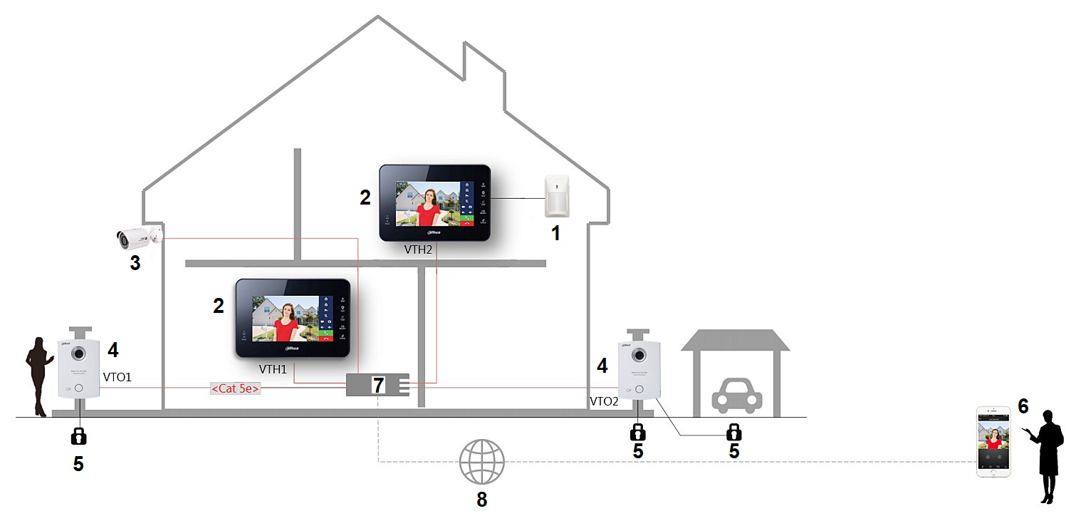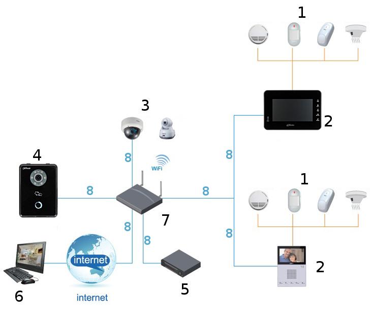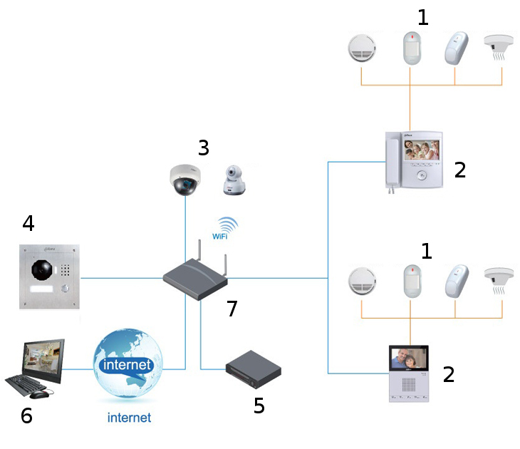 Kąt widzenia: 87 ° ; Oświetlacz IR; Liczba obsługiwanych abonentów: 6 ;