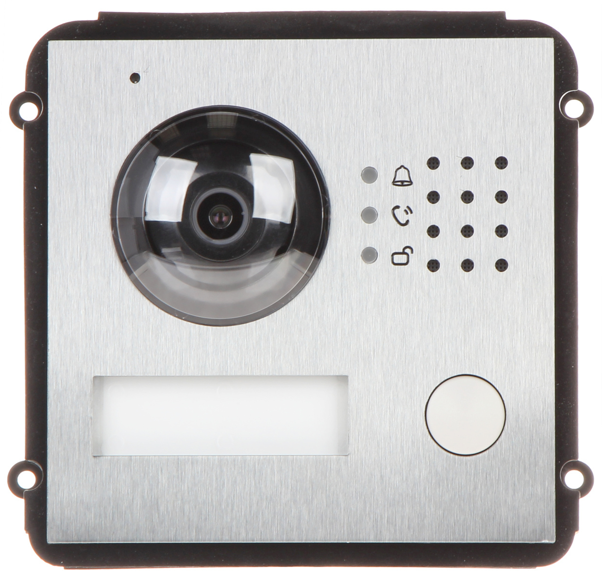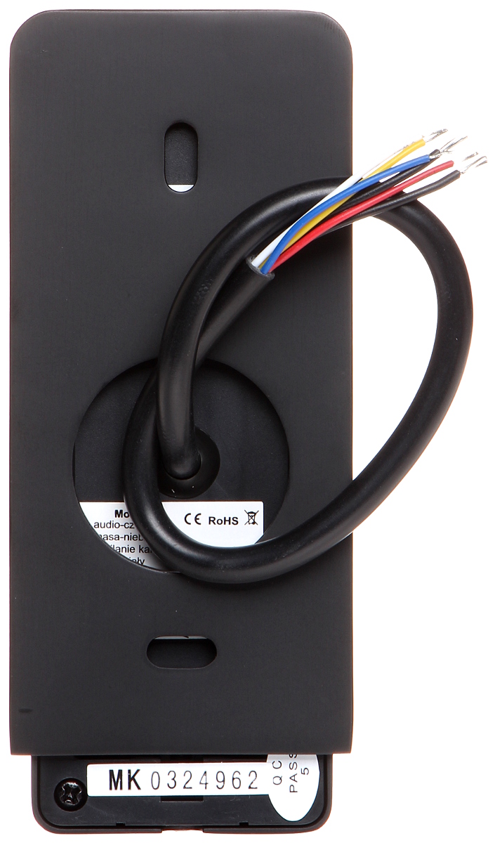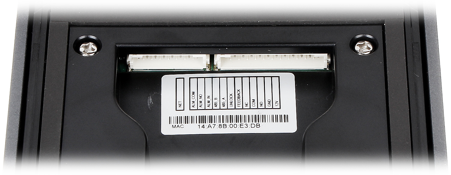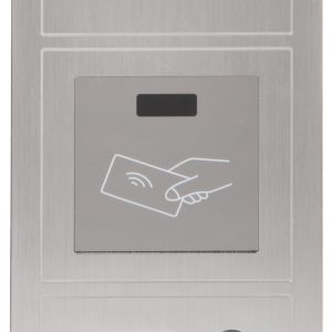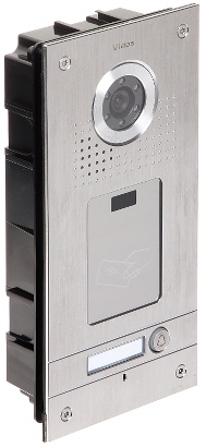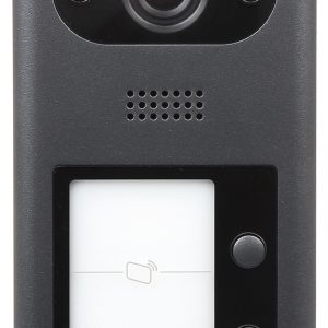 Przetwornik: 1/4 “, 1.0 Mpx CMOS ; Metoda kompresji obrazu: H.264 ; Wbudowany czytnik zbliżeniowy : Karty kontroli dostępu – Mifare ; Wybrane cechy: Przycisk dzwonka, Komunikacja dwukierunkowa, Wykrywanie sabotażu – oderwania od podłoża ; Kolor: Czarny ;