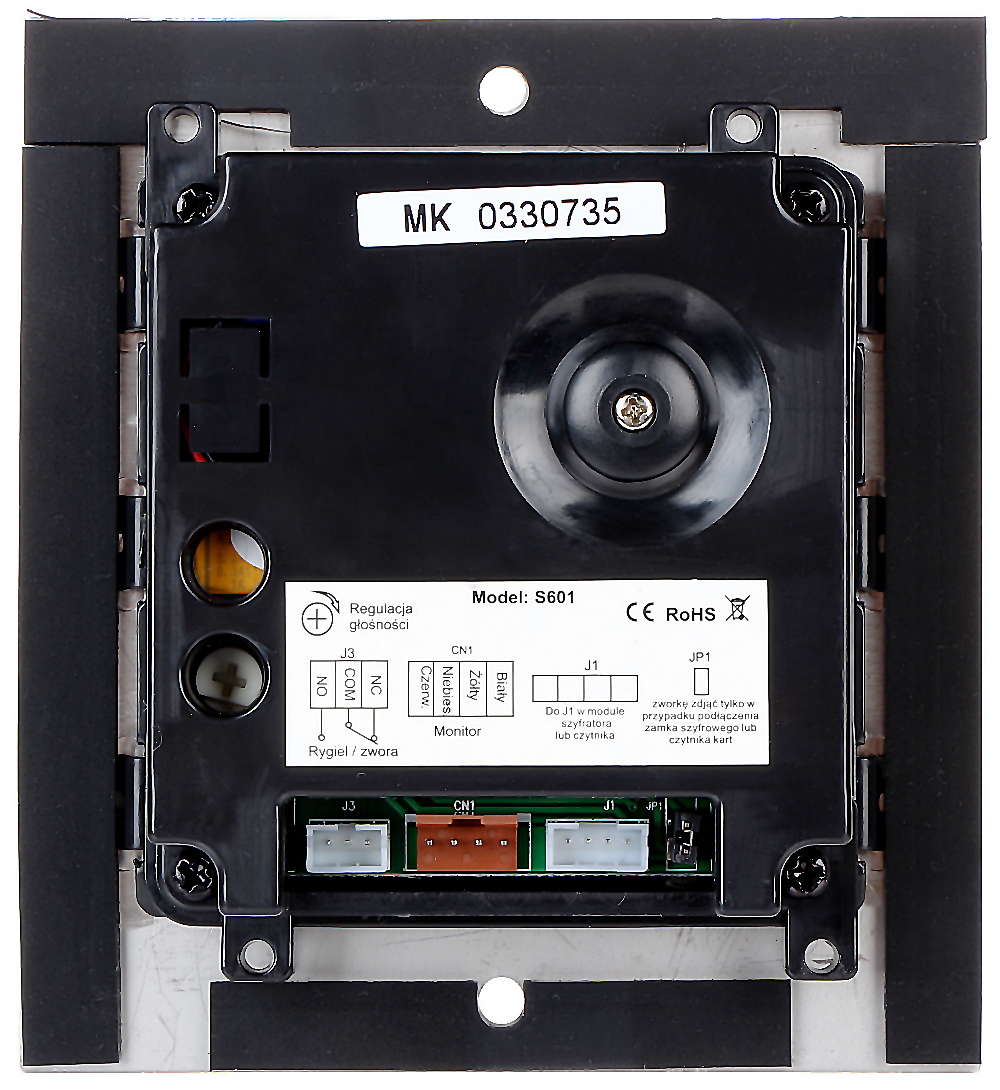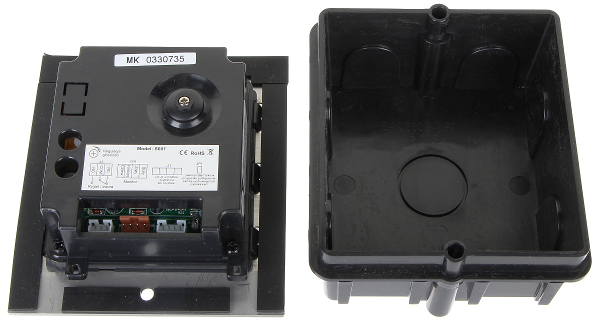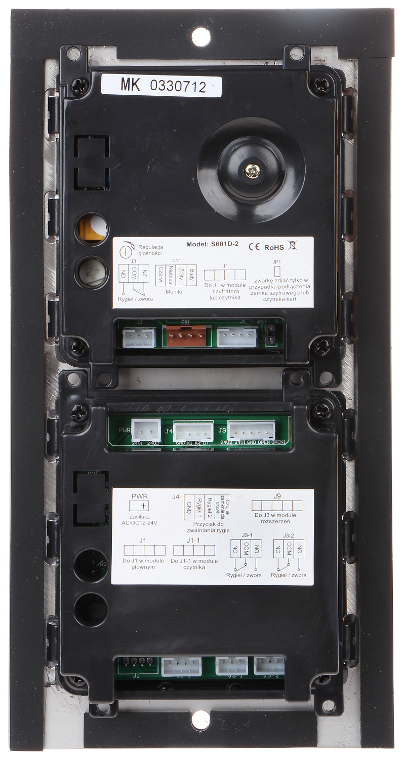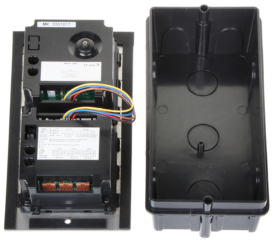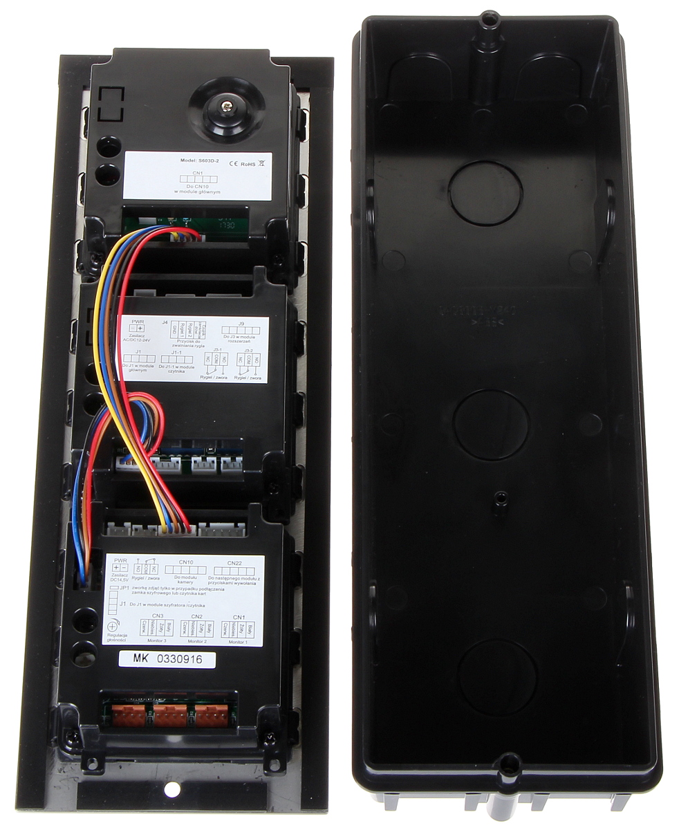 Wideodomofon jest montowany w obudowie podtynkowej; Przetwornik: 1/3 ” CMOS ; Zasilanie: 24 V DC ;