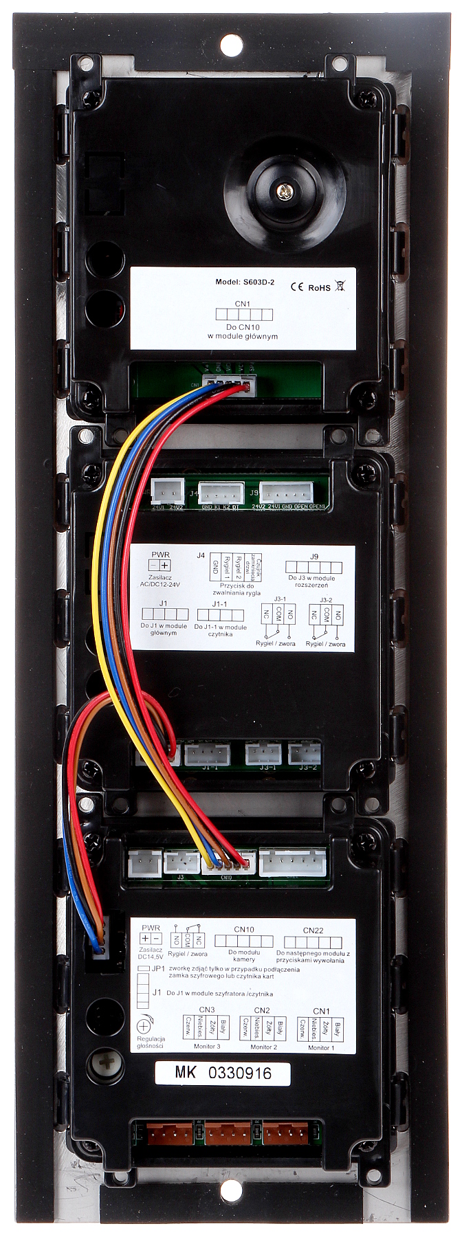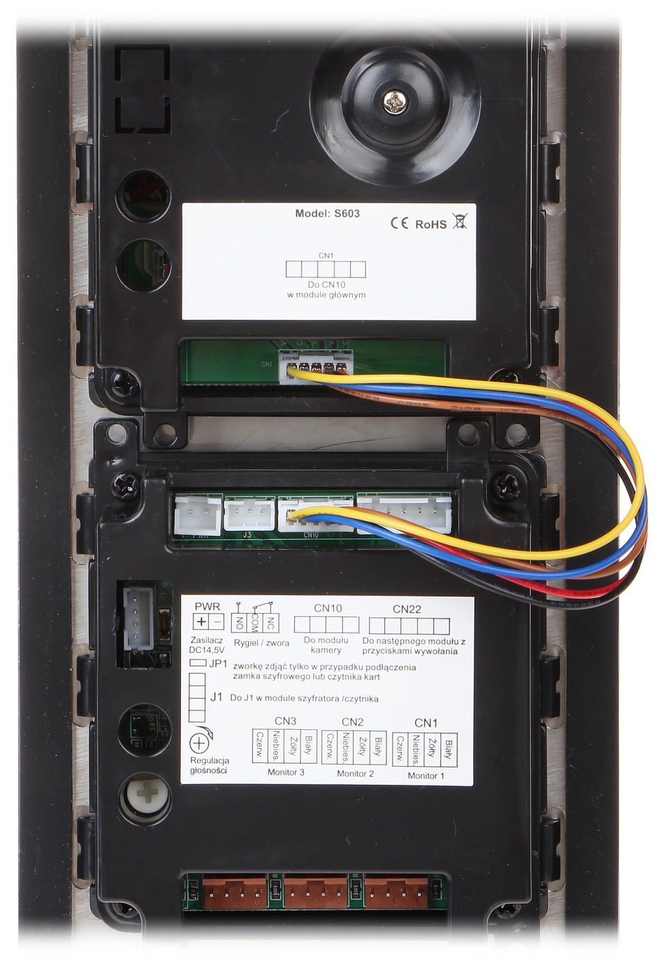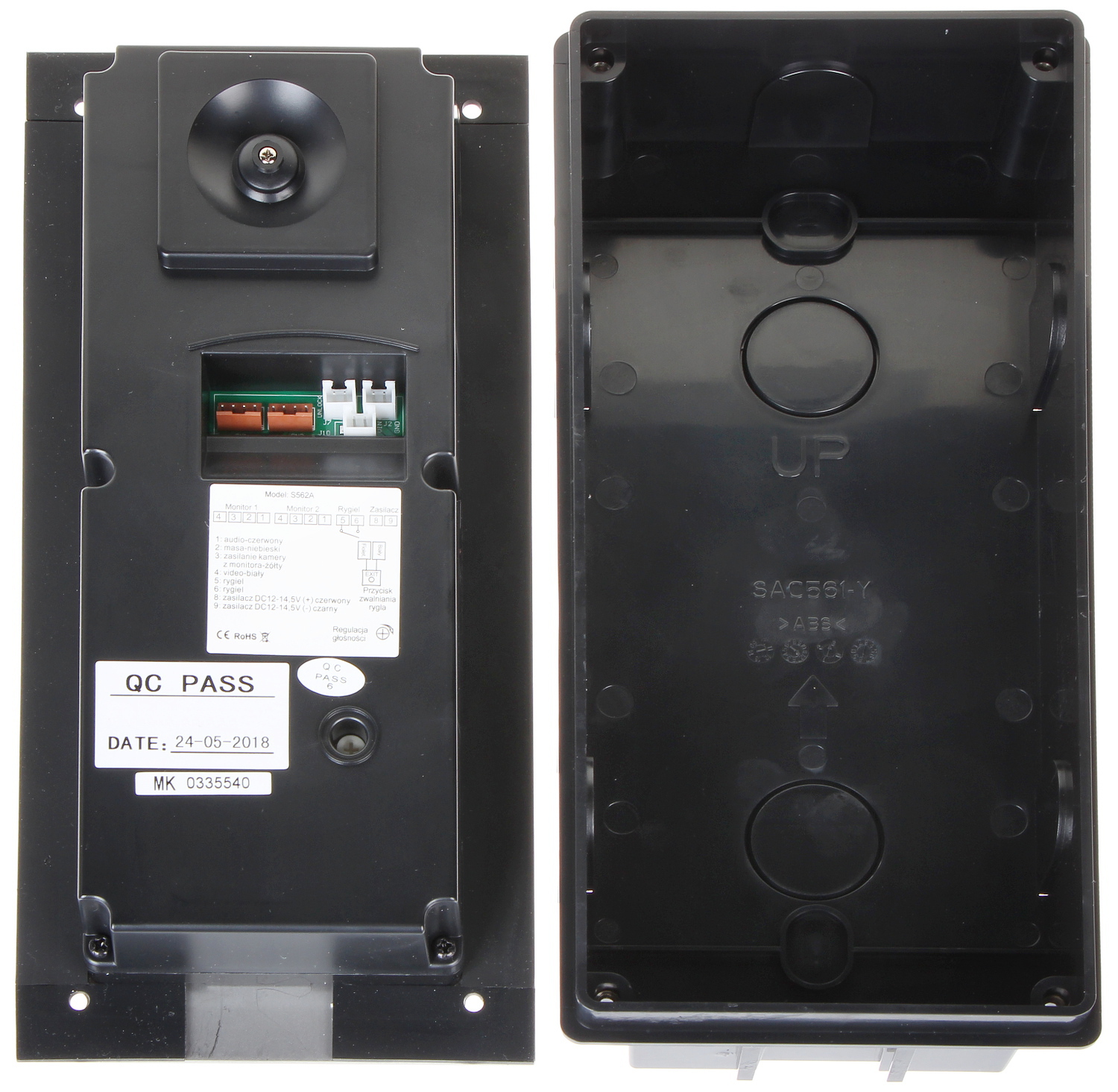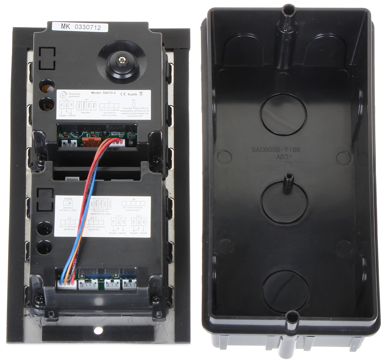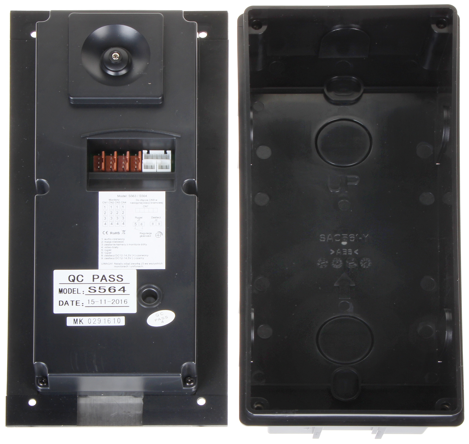 Wideodomofon jest montowany w obudowie podtynkowej; Przetwornik: 1/3 ” CMOS ; Zasilanie: 24 V DC ;