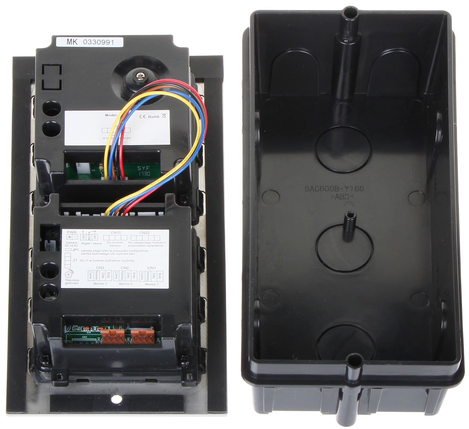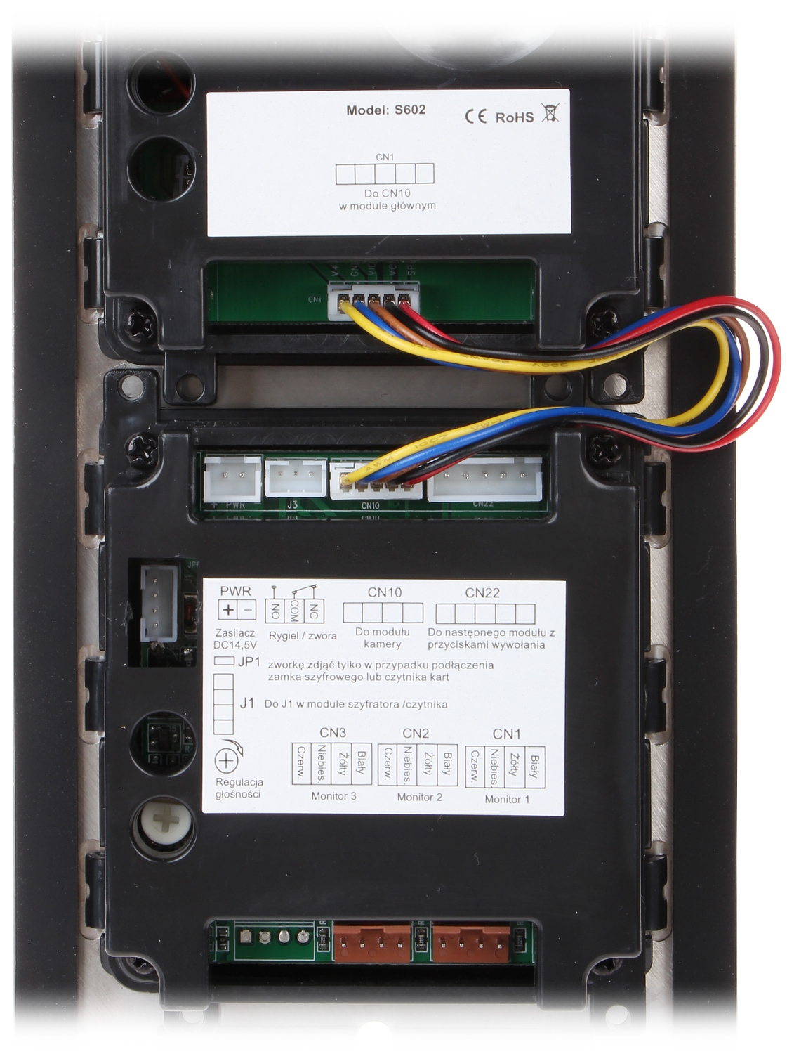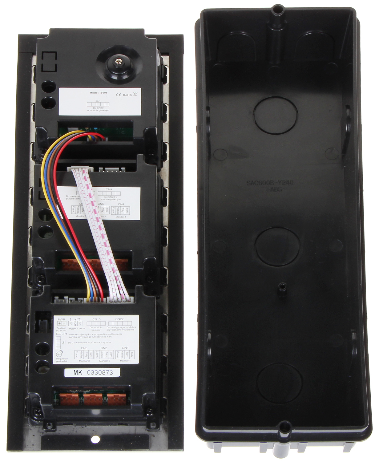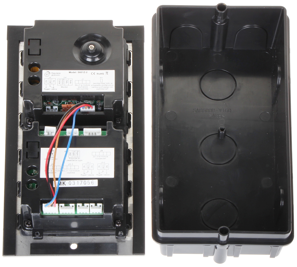 Wideodomofon jest montowany w obudowie podtynkowej; Przetwornik: 1/3 ” CMOS ; Zasilanie: 24 V DC ;