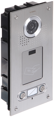Przetwornik: 1/2.8 “, 2 Mpx CMOS ; Kąt widzenia: 140 ° ; Metoda kompresji obrazu: H.264 ; Wbudowany czytnik zbliżeniowy : Karty kontroli dostępu ; Liczba obsługiwanych abonentów: 2 ; Wybrane cechy: Komunikacja dwukierunkowa, Wykrywanie sabotażu – otwarcia obudowy ; Zasilanie: PoE (802.3af), 12 V DC ; Kolor: Grafitowy ;