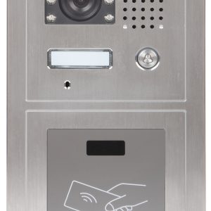 Przetwornik: 1/4 “, 1.0 Mpx CMOS ; Metoda kompresji obrazu: H.264 ; Wbudowany czytnik zbliżeniowy : Karty kontroli dostępu – Mifare ; Wybrane cechy: Przycisk dzwonka, Komunikacja dwukierunkowa, Wykrywanie sabotażu – oderwania od podłoża ;