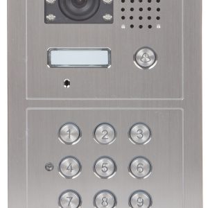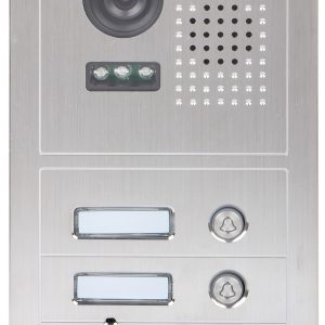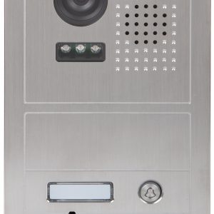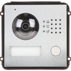 Przetwornik: 1/2.7 “, 2.1 Mpx CMOS ; Metoda kompresji obrazu: H.264 ; Wybrane cechy: Przycisk dzwonka, Komunikacja dwukierunkowa, Wykrywanie sabotażu – oderwania od podłoża ; Zasilanie: PoE (802.3af) 12 V DC ; Obudowa: Metalowa, Wodoodporna – IK10 ;