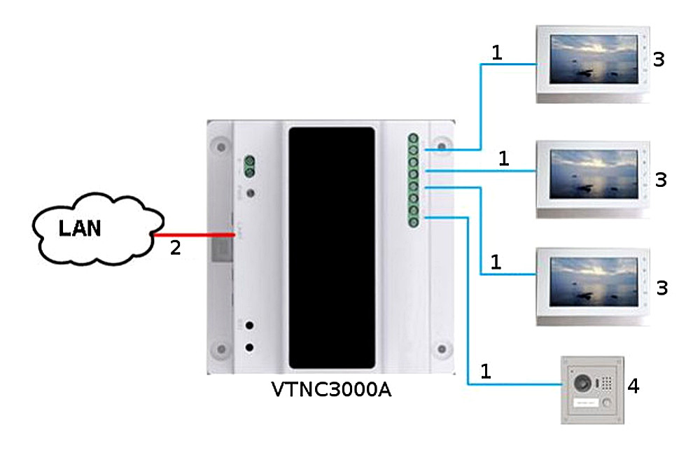 Kąt widzenia: 87 ° ; Oświetlacz IR; Liczba obsługiwanych abonentów: 4 ;