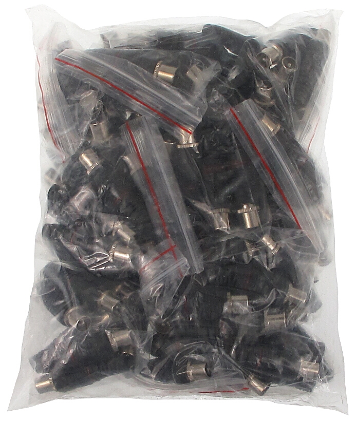 W opakowaniu: 100 szt. Podana cena za opakowanie ; Rodzaj złącza: IEC Wtyk prosty ; Mocowanie elementów złącza: Skręcanie ; Przeznaczenie: Kabel koncentryczny ; Średnica kabla: max. 7.2 mm ;