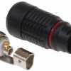 Rodzaj złącza: CINCH Wtyk prosty ; Kolor: Czarny ; Mocowanie elementów złącza: Skręcanie ; Przeznaczenie: Kabel koncentryczny ; Średnica kabla: max. 5.0 mm ;