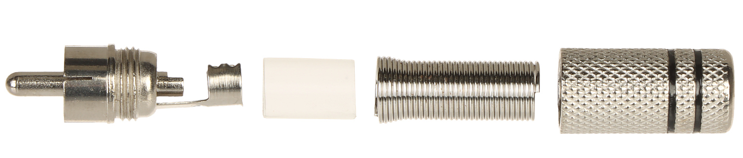Kolor: Srebrny ; Rodzaj złącza: CINCH Wtyk prosty ; Mocowanie elementów złącza: Skręcanie ; Przeznaczenie: Kabel koncentryczny ; Średnica kabla: max. 6.5 mm ;