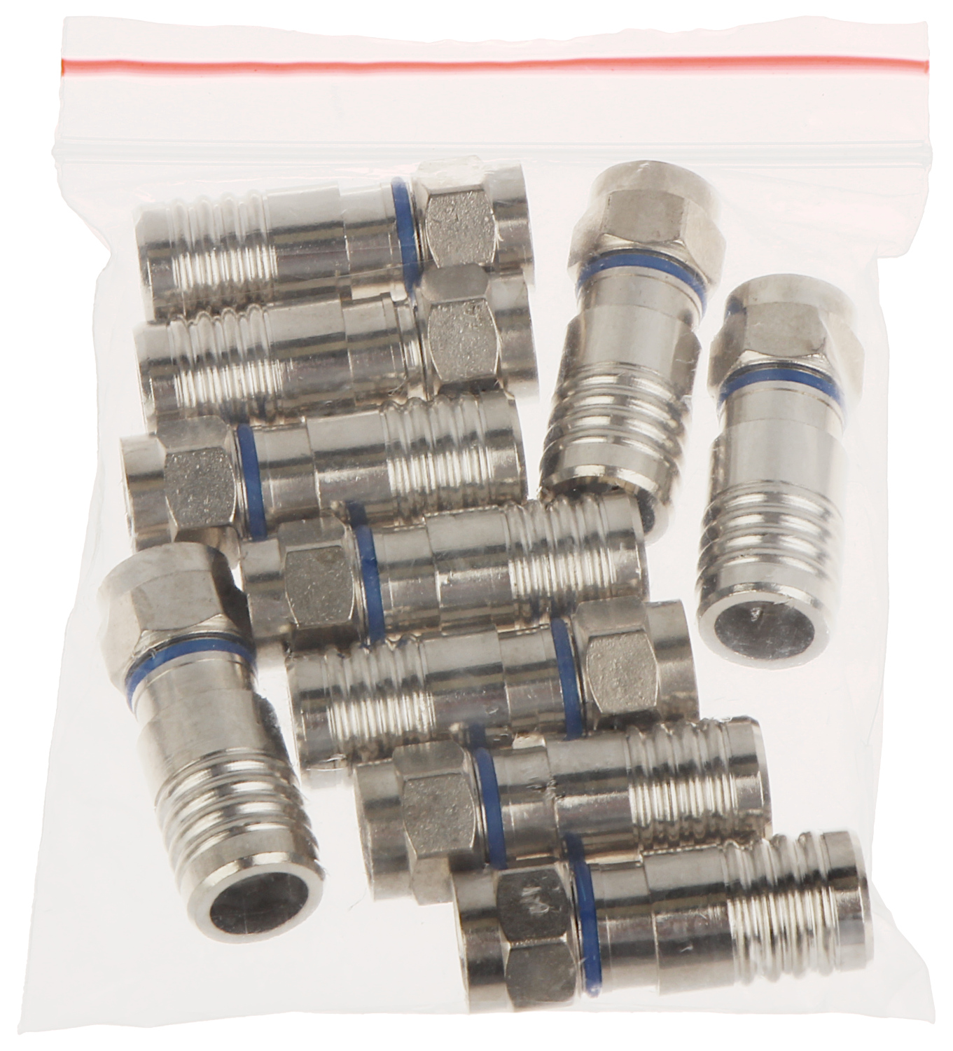 W opakowaniu: 10 szt. Podana cena za opakowanie ; Rodzaj złącza: “F” Wtyk ; Mocowanie elementów złącza: Mocowanie kompresyjne ; Przeznaczenie: Kabel koncentryczny ; Średnica kabla: max. 7.7 mm ;