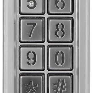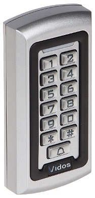 Obsługa kart: Unique EM 125kHz ; Zasięg odczytu kart: ~ 5 cm ; Praca autonomiczna; Wbudowana klawiatura; Komunikacja: Wiegand 26 ; Przycisk dzwonka; Wybrane cechy: Liczba wyjść przekaźnikowych : 1, 2000 zaindeksowanych użytkowników, Wyjście alarmowe ; Obudowa: Metalowa, Wandaloodporna ;
