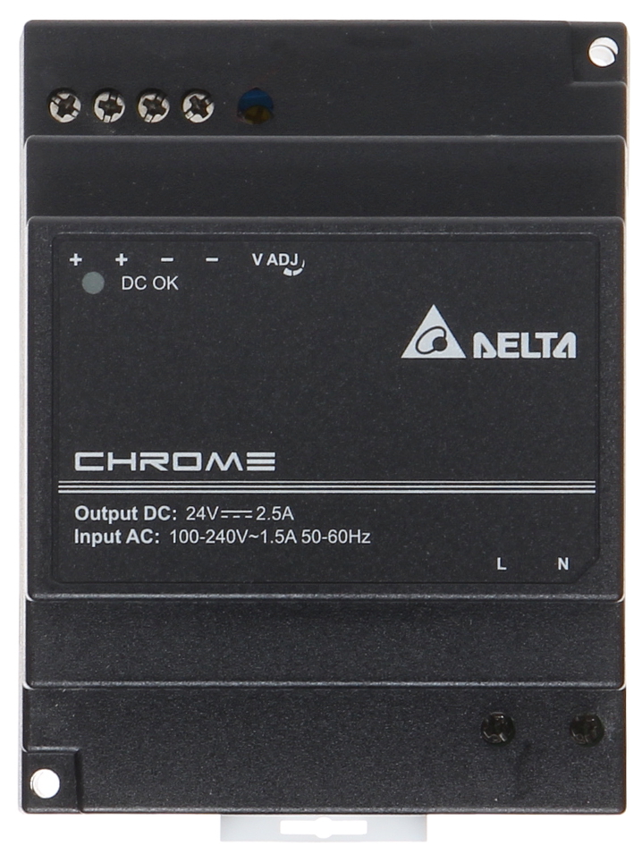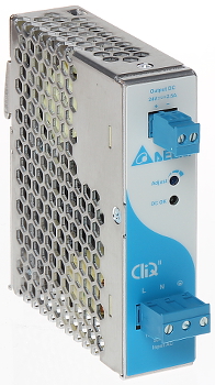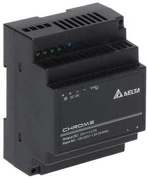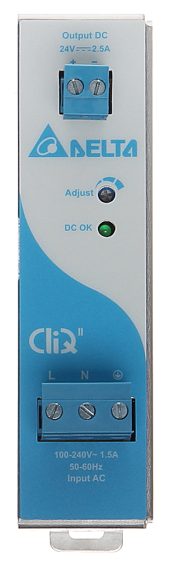 Napięcie wyjściowe: 24 V DC ; Regulacja napięcia wyjściowego: 24 … 28 V ; Wydajność prądowa zasilacza: 2.5 A ; Moc zasilacza: 60 W ;