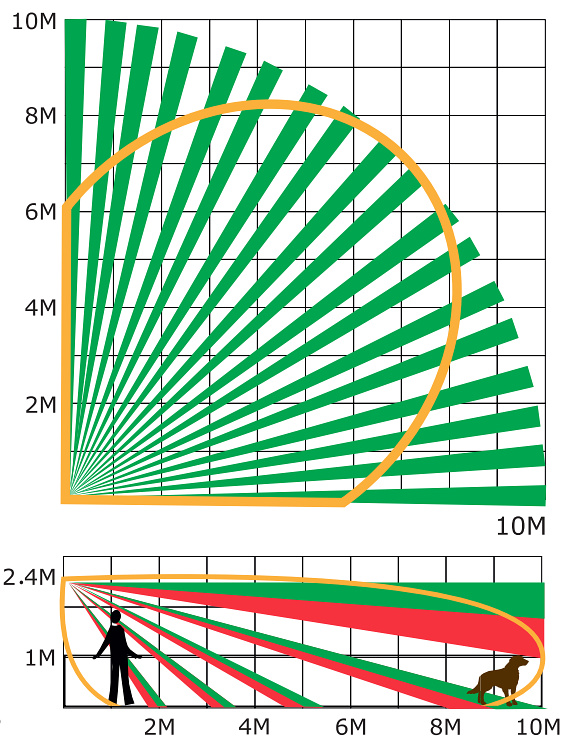 Zastosowanie: Zewnętrzna ; Rodzaj czujnika: 2 x Czujnik PIR + Mikrofala (MW) ; Zasięg: 10 m ; Kąt detekcji: 90 ° ; Odporność na zwierzęta: ≤ 10 kg ; Funkcja antymaskingu: Technologia potrójnego antymaskingu ;