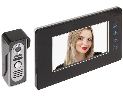 Przetwornik: 1/3 ” CCD ; Kąt widzenia kamery: ~ 92 ° ; Oświetlacz IR: Wbudowany oświetlacz podczerwieni umożliwia obserwację w nocy ; Ekran: 7 ” Kolorowa matryca TFT-LCD ; Rozdzielczość: 480 x 234 ; Wybrane funkcje: Do wyboru 16 dźwięków, Dodatkowe sterowanie bramą, Montaż na kablu czterożyłowym, ; Zasilanie: 12 V DC ;
