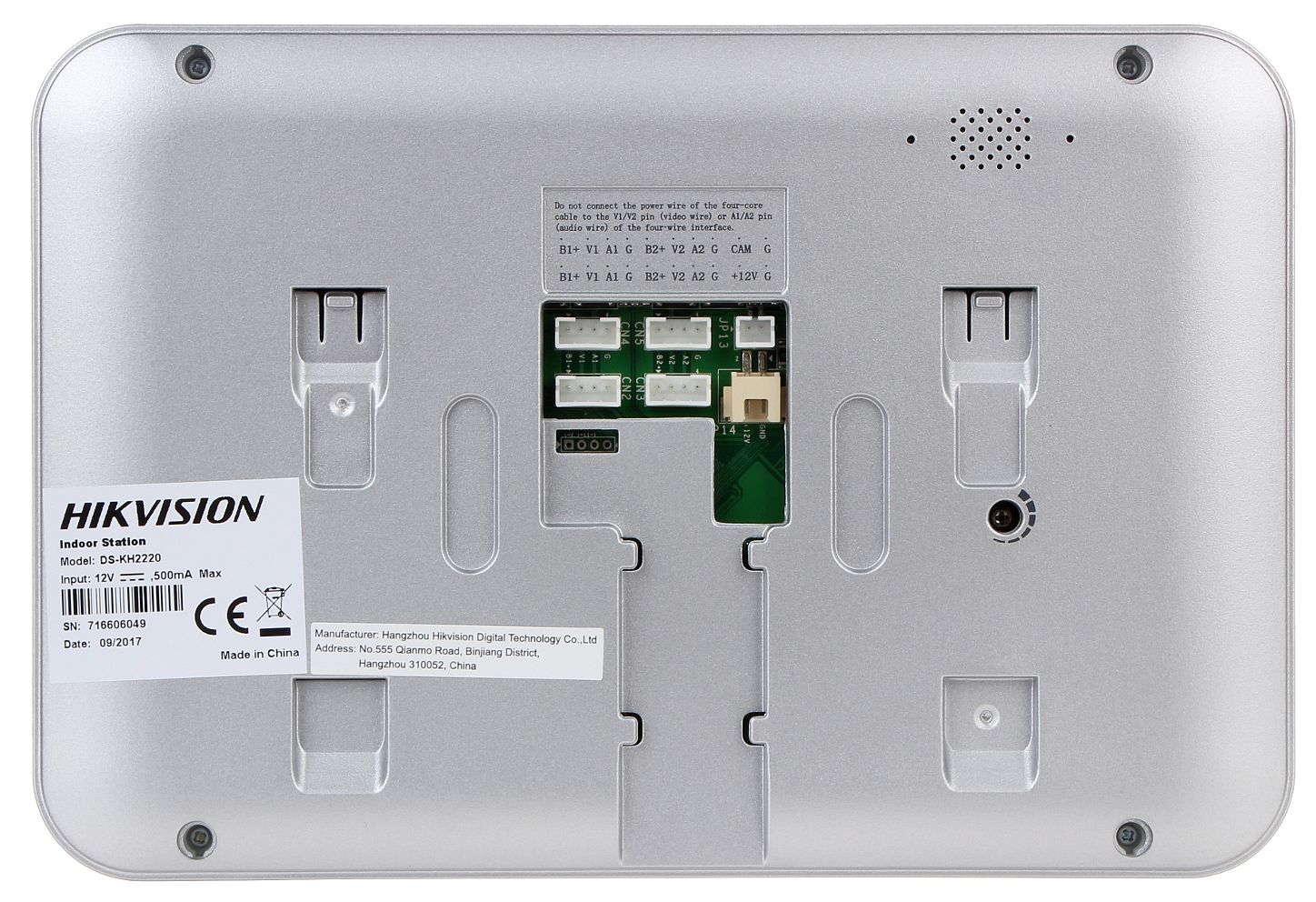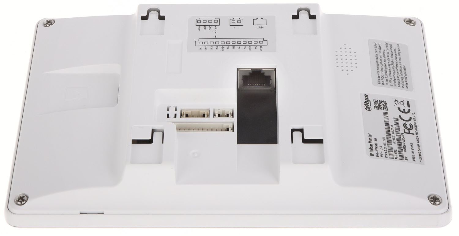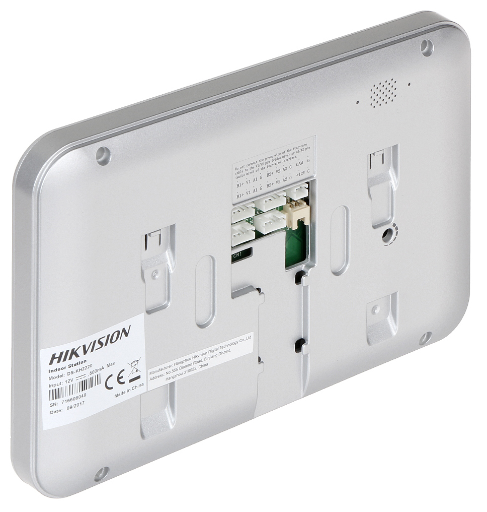 Przetwornik: 1.3 Mpx CMOS ; Metoda kompresji obrazu: H.264 ; Wybrane cechy: Przycisk dzwonka, Komunikacja dwukierunkowa, Wykrywanie sabotażu – oderwania od podłoża ; Ekran: 7 ” pojemnościowy ekran dotykowy ; Rozdzielczość: 800 x 480 ; Wybrane funkcje: Gniazdo karty pamięci Automatyczne wykonywanie i zapisywanie zdjęć w przypadku nieodebrania dzwonka, Rejestracja krótkiej wiadomości wideo w przypadku braku odpowiedzi na przycisk dzwonka ; Wejścia alarmowe: 6 szt. ; Rodzaj obudowy: Natynkowa ;
