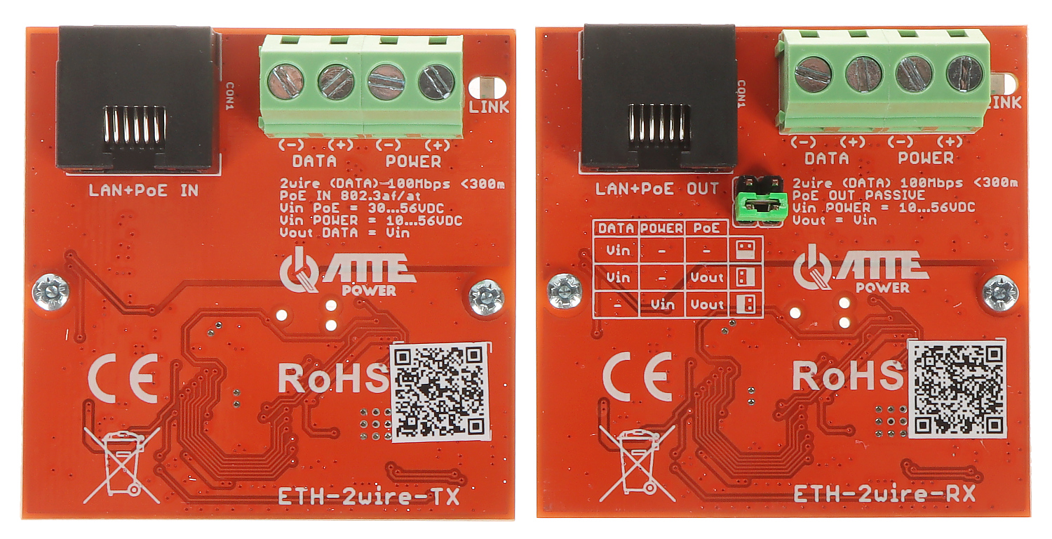 ZESTAW KONWERTERÓW UTP / 2-WIRE DO TRANSMISJI LAN+POE ETH-2WIRE-SET KOMPLET 2 SZT ATTE