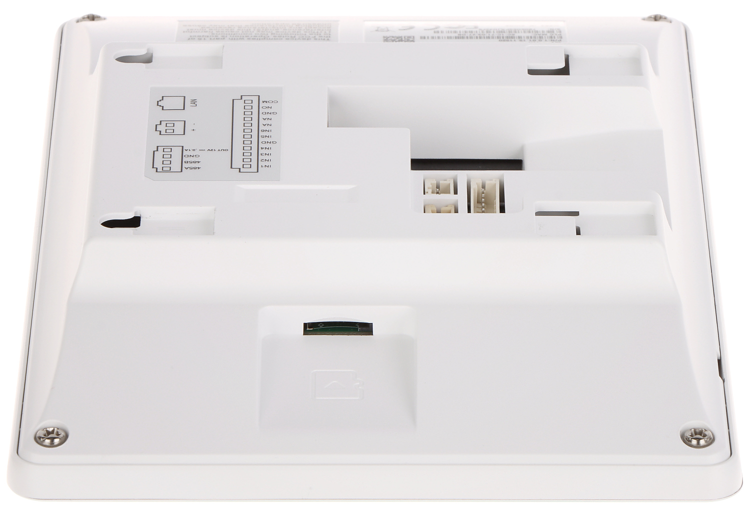 Przetwornik: 1.3 Mpx CMOS ; Metoda kompresji obrazu: H.264 ; Wybrane cechy: Przycisk dzwonka, Komunikacja dwukierunkowa, Wykrywanie sabotażu – oderwania od podłoża ; Ekran: 7 ” pojemnościowy ekran dotykowy ; Rozdzielczość: 800 x 480 ; Wybrane funkcje: Komunikacja dwukierunkowa, Automatyczne wykonywanie i zapisywanie zdjęć w przypadku nieodebrania dzwonka, Rejestracja krótkiej wiadomości wideo w przypadku braku odpowiedzi na przycisk dzwonka ; Wejścia alarmowe: 6 ; Rodzaj obudowy: Podtynkowa ;