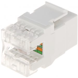 Rodzaj złącza: Gniazdo RJ45 ; Kolor: Biały ; Mocowanie żyły: Szybkozłącze Krone – Mocowanie od spodu (kątowe), zatrzaskowe ; Przeznaczenie: Patch panel Keystone, UTP kat. 6 ;