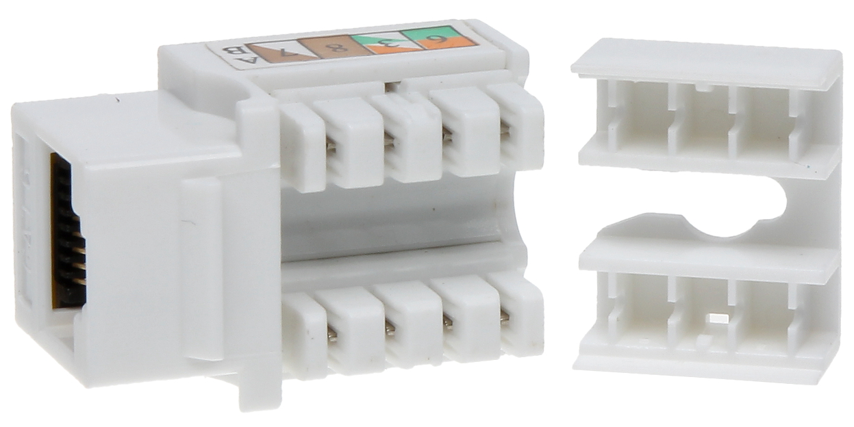 Rodzaj złącza: Gniazdo RJ45 ; Kolor: Biały ; Mocowanie żyły: Szybkozłącze Krone – Mocowanie z tyłu, zatrzaskowe ; Przeznaczenie: Patch panel Keystone, UTP kat. 5e ;