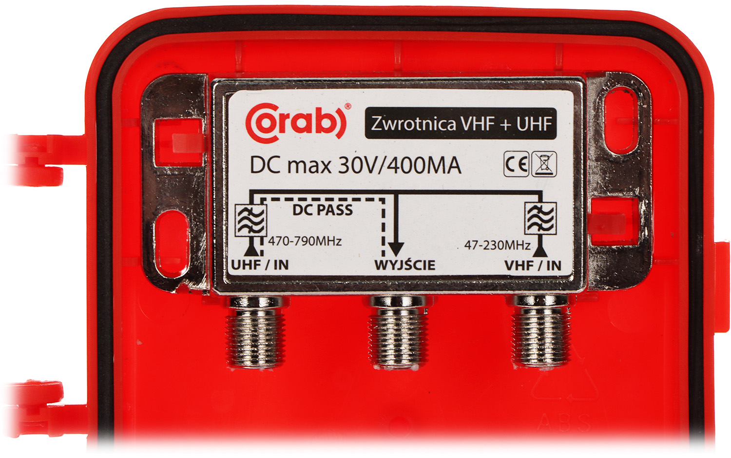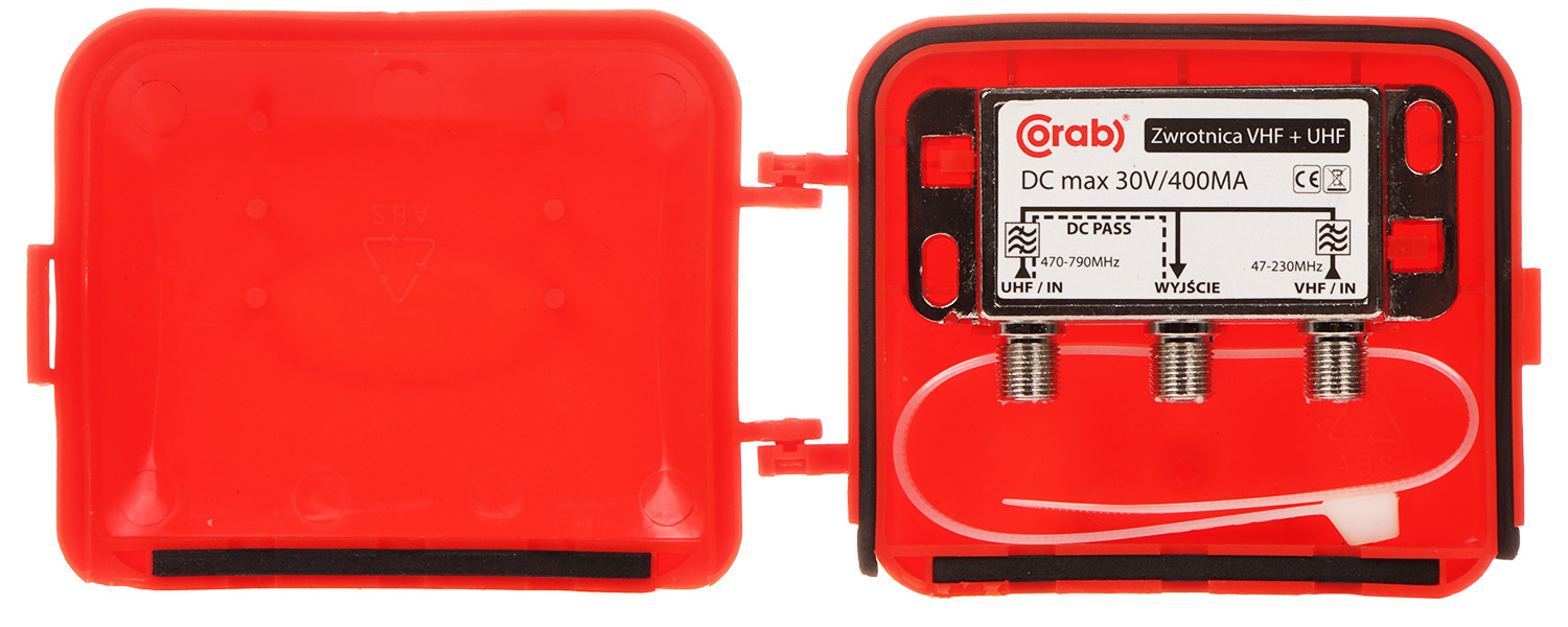 Wejście: VHF : 47 … 230 MHz, UHF : 470 … 790 MHz + DC ; Wybrane cechy: Obudowa bryzgoszczelna ; Producent / Marka: CORAB ;