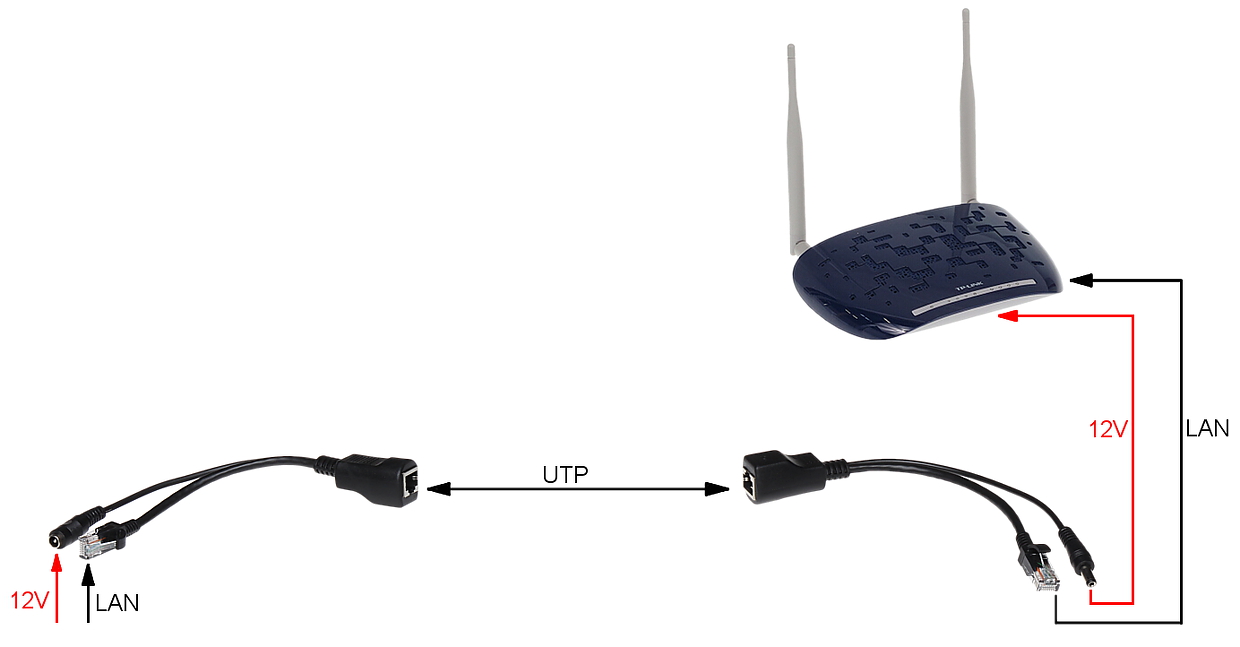 Adapter AWZ-613 to urządzenie, dzięki któremu w prosty sposób można zasilić do 4 urządzeń wykorzystując skrętkę komputerową.