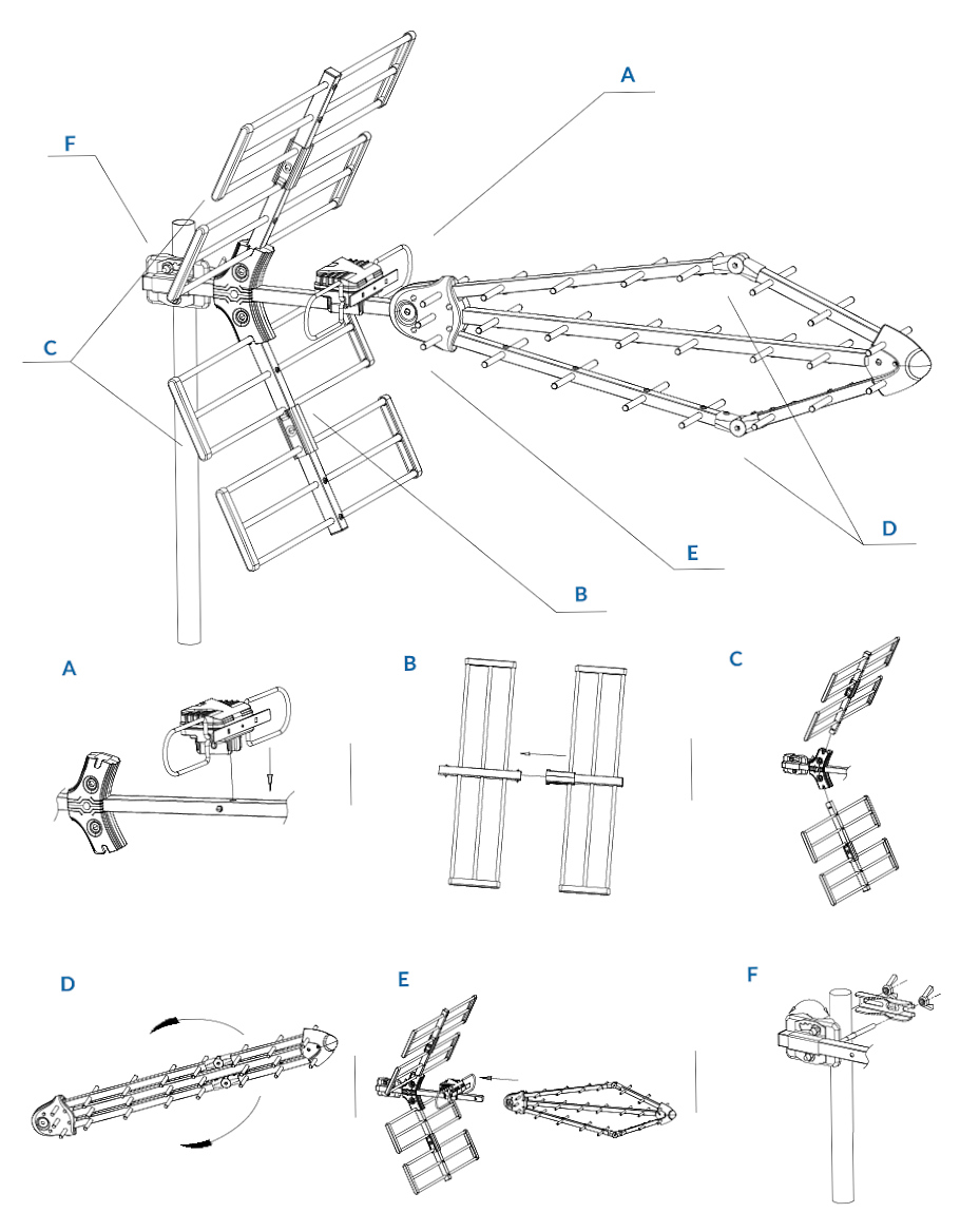 Części anteny wykonane są z aluminium, a stalowe elementy konstrukcyjne zostały ocynkowane galwanicznie