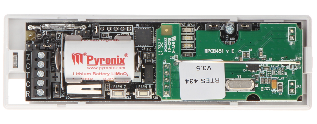 Urządzenie komunikuje się z centralą alarmową bezprzewodowo za pośrednictwem protokołu Pyronix.