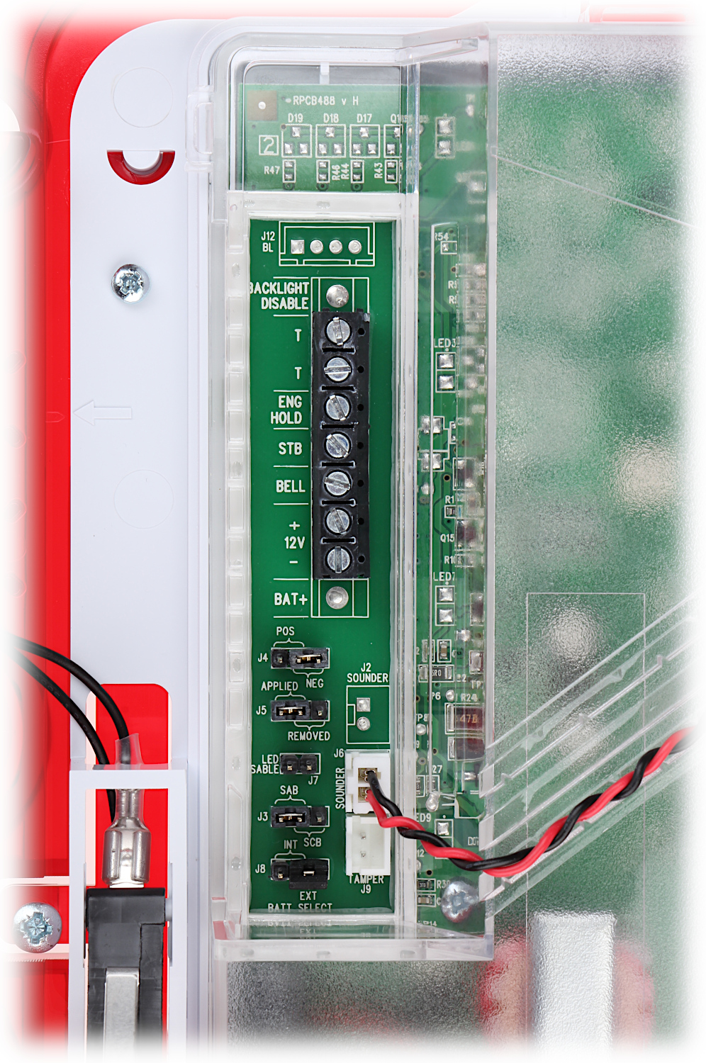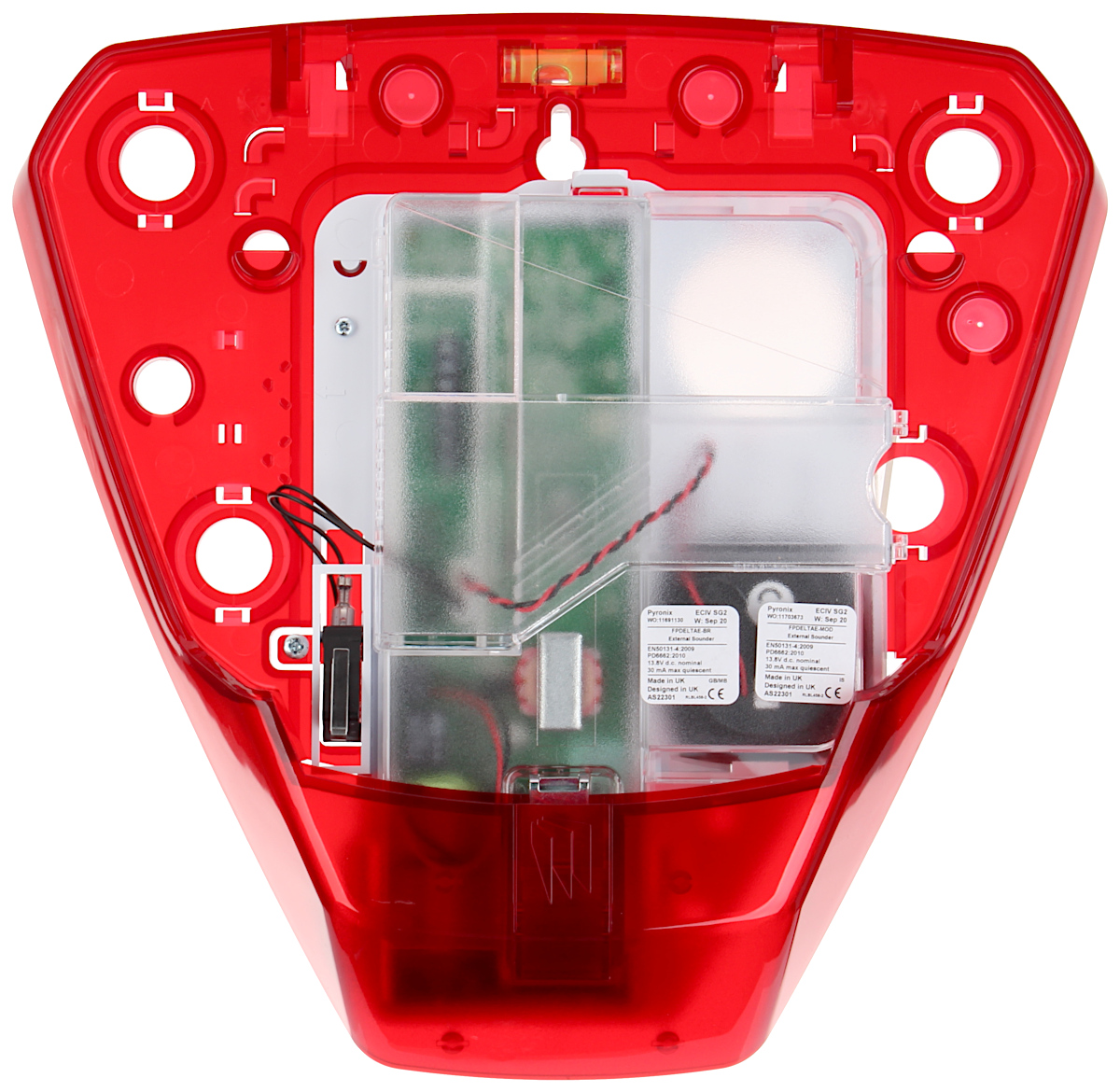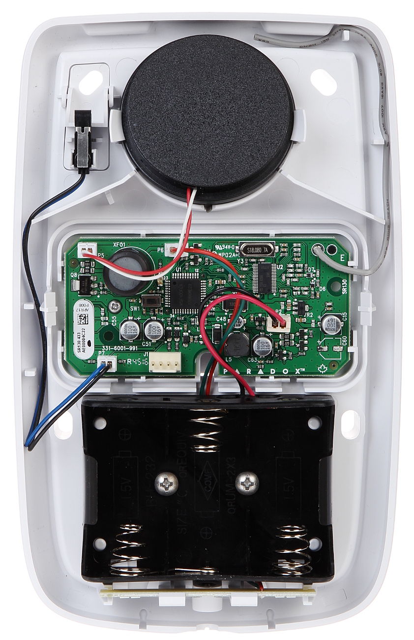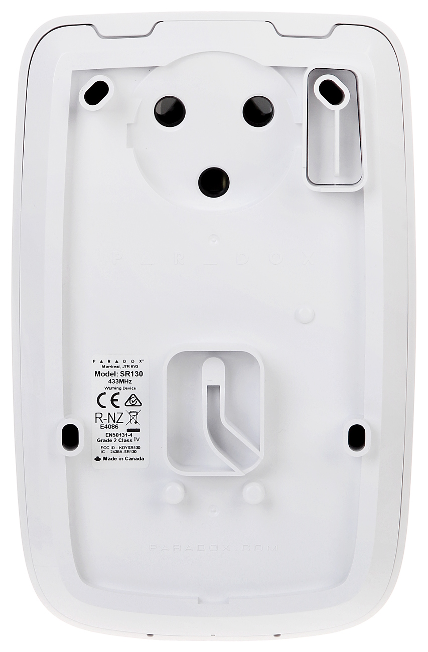 Konstrukcja sygnalizatora zapewnia wysoki stopień zabezpieczenia antysabotażowego (przed otwarciem i przed oderwaniem od podłoża).