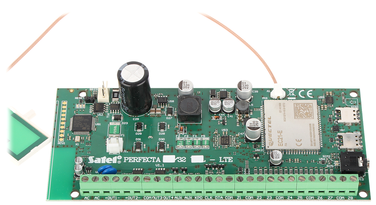 Wbudowany moduł GSM/GPRS daje szerokie możliwości: umożliwia współpracę z aplikacją mobilną, z obsługą wiadomości PUSH, zdalną konfigurację z użyciem programu PERFECTA Soft, monitoring zdarzeń (np. do stacji monitorującej agencji ochrony), powiadamianie głosowe, sterowanie przez SMS oraz weryfikację audio (nasłuch dźwięków z chronionego obiektu)